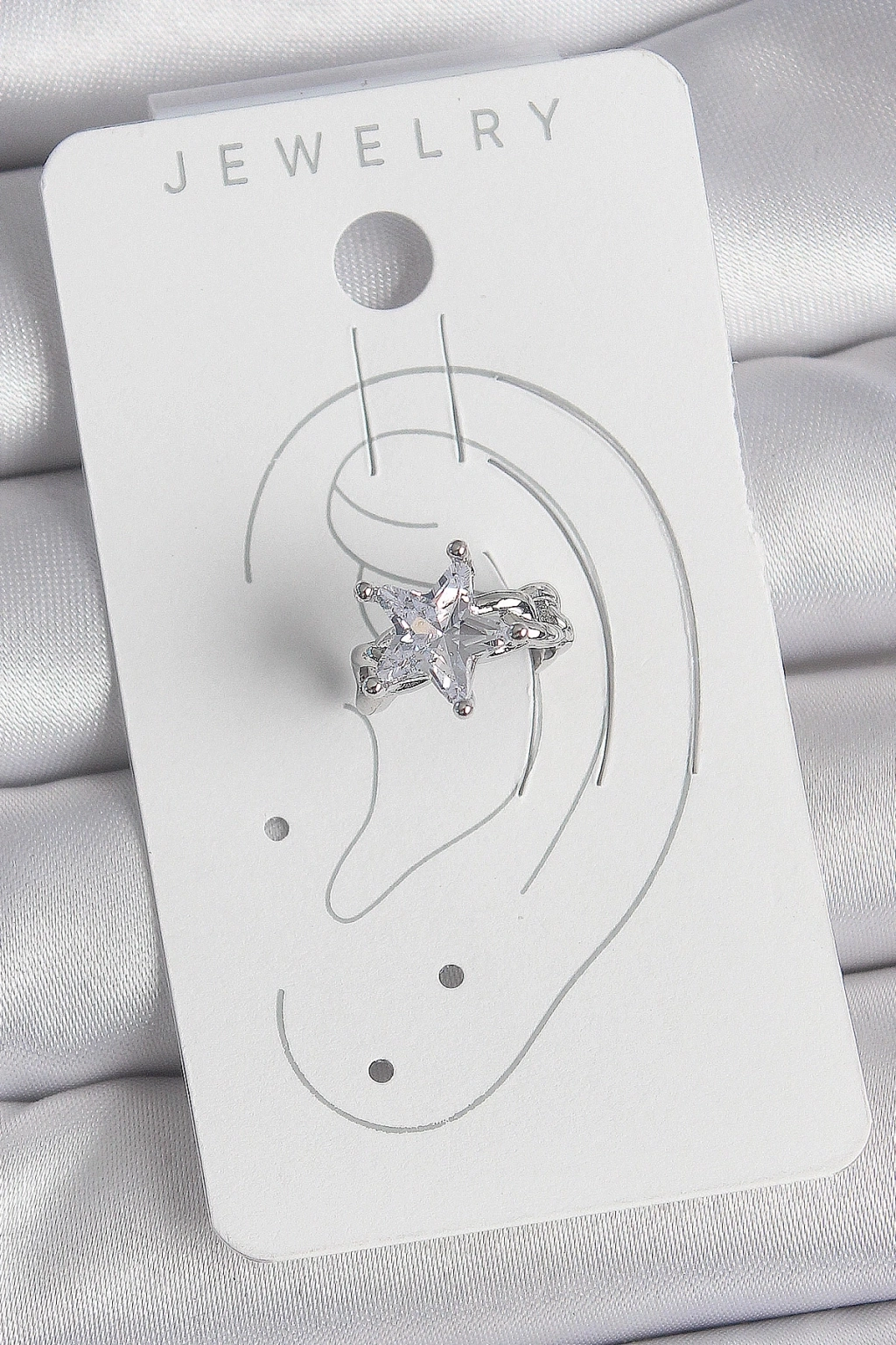 ® Pirinç Gümüş Renk Zirkon Taşlı Yıldız Model Kadın Kıkırdak Küpe