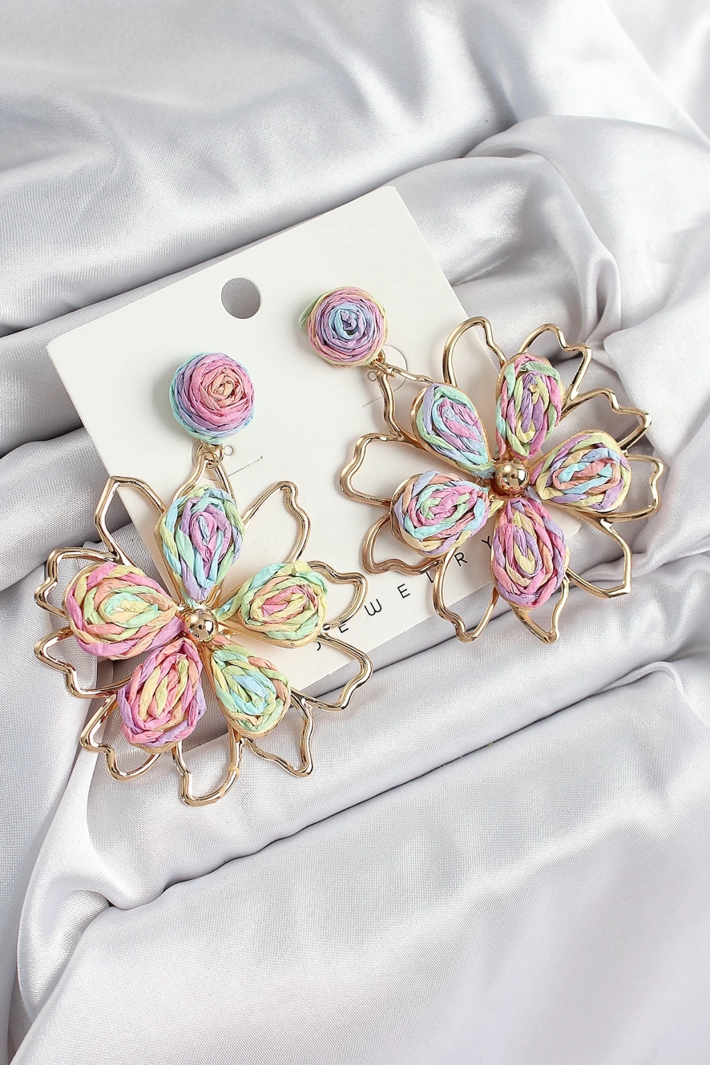 ® Pirinç Rainbow Çiçek Model Gold Renk Kadın Hasır Küpe