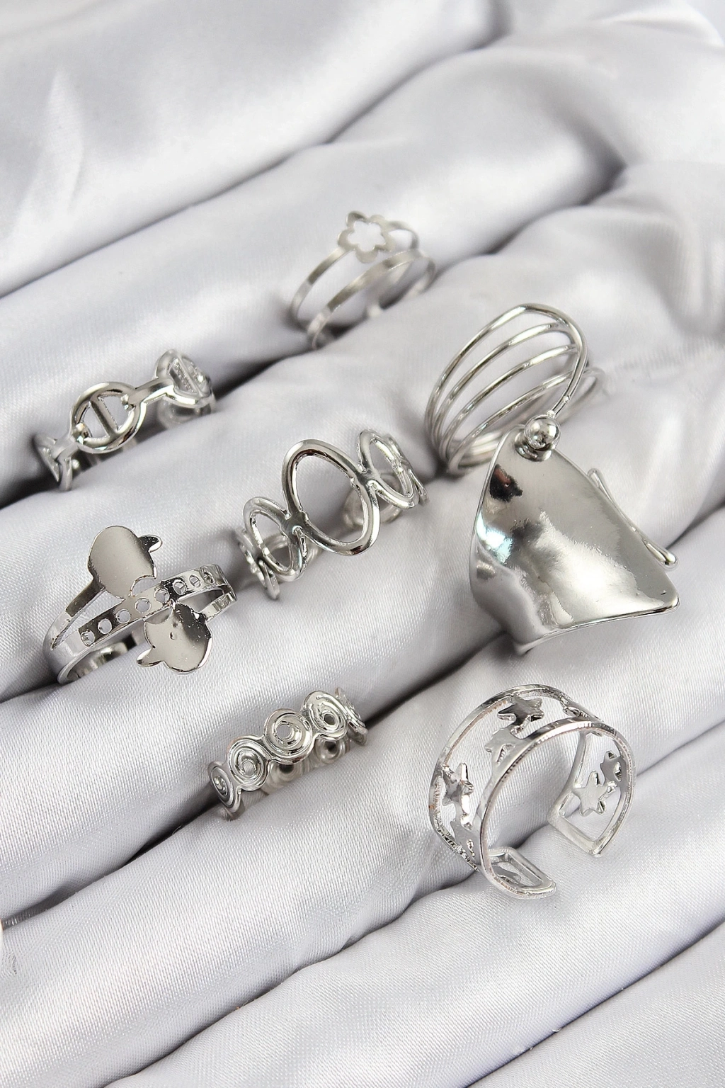 ® Pirinç Sarmal Ve Yıldız Model Gümüş Renk Kadın Yüzük Kombin Set