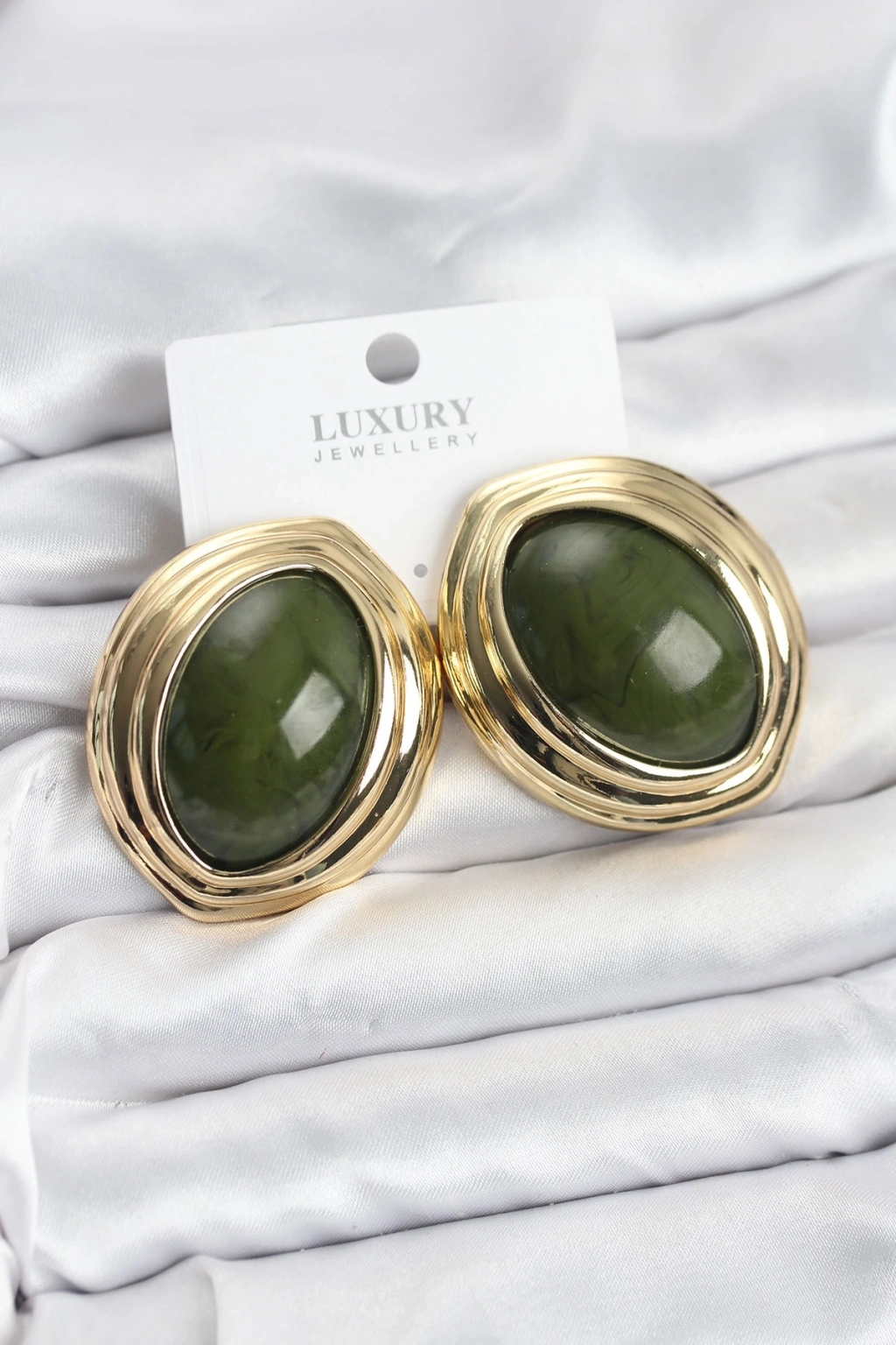 ® Pirinç Yeşil Badem Model Vintage Gold Kadın Küpe