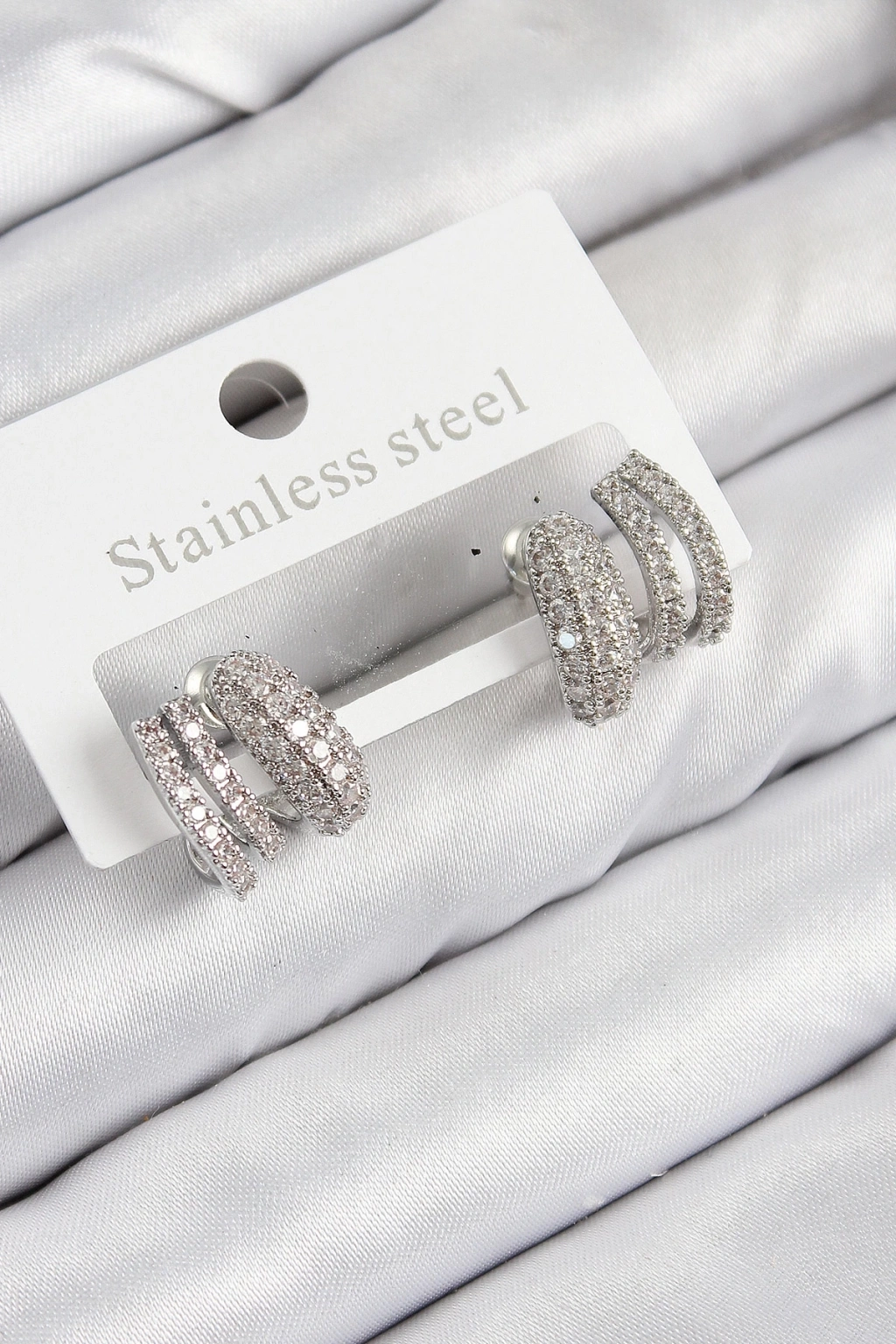 ® Pirinç Zirkon Taşlı Kıvrımlı Model Gümüş Renk Kadın Küpe