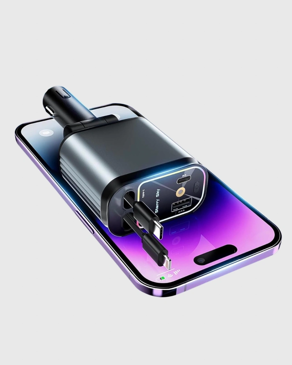 Renault, Peugeot, Citroen ve Fiat araç sahipleri için tasarlanan bu 4’ü 1 arada hızlı şarj cihazı, seyahat sırasında cihazlarınızı güvenle şarj etmenize olanak tanır. 66W toplam çıkış gücü ve PD/QC teknolojisi sayesinde cihazlarınıza normalden çok daha hızlı enerji yükler.Kompakt ve taşınabilir yapısı, çekilebilir kablo özelliği ile birleşerek kablo karışıklığını ortadan kaldırır. 180° dönebilen şarj başlığı, cihazı aracınızın her konumunda sabit tutar ve sarsıntılarda gevşeme yapmaz.Aşırı akım, voltaj ve sıcaklık koruması ile cihazlarınız daima güvende kalır. Ayrıca LED atmosfer ışıkları gece yolculuklarınıza farklı bir hava katar ve müzikle senkronize çalışarak aracınızda keyifli bir ambiyans yaratır. Renault, Peugeot, Citroen ve Fiat kullanıcıları için hem güvenli hem de şık bir seçimdir.