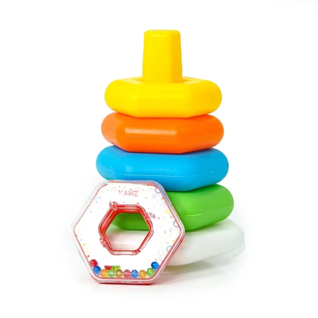 • Kiki Renkli Altıgen Halkalar Çıngıraklı AE-1510 Özellikleri;<br><br><br>Kiki Çıngıraklı Altıgen Halkalar, halkalardan bir tanesinde bulunan boncuklar sayesinde çıngırak olarak da kullaılabilir.<br>Farklı renkte ve ölçülerde olan halkalar bebeklerin renkleri ve şekilleri tanımasına yardımcı olur.<br>Canlı renkleri ve parlak desenleriyle bebeğin görsel algısını uyarır ve geliştirir.<br>Bebegin düşünmesini, öğrenmesini ve problem çözmesini temsil eder.<br>Uzanma, kavrama, emekleme ya da yuvarlanma gibi bebeğin