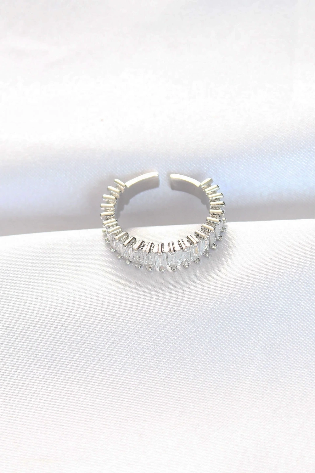 ® Sıralı Baget Taşlı Silver Renk Ayarlanabilir Yüzük