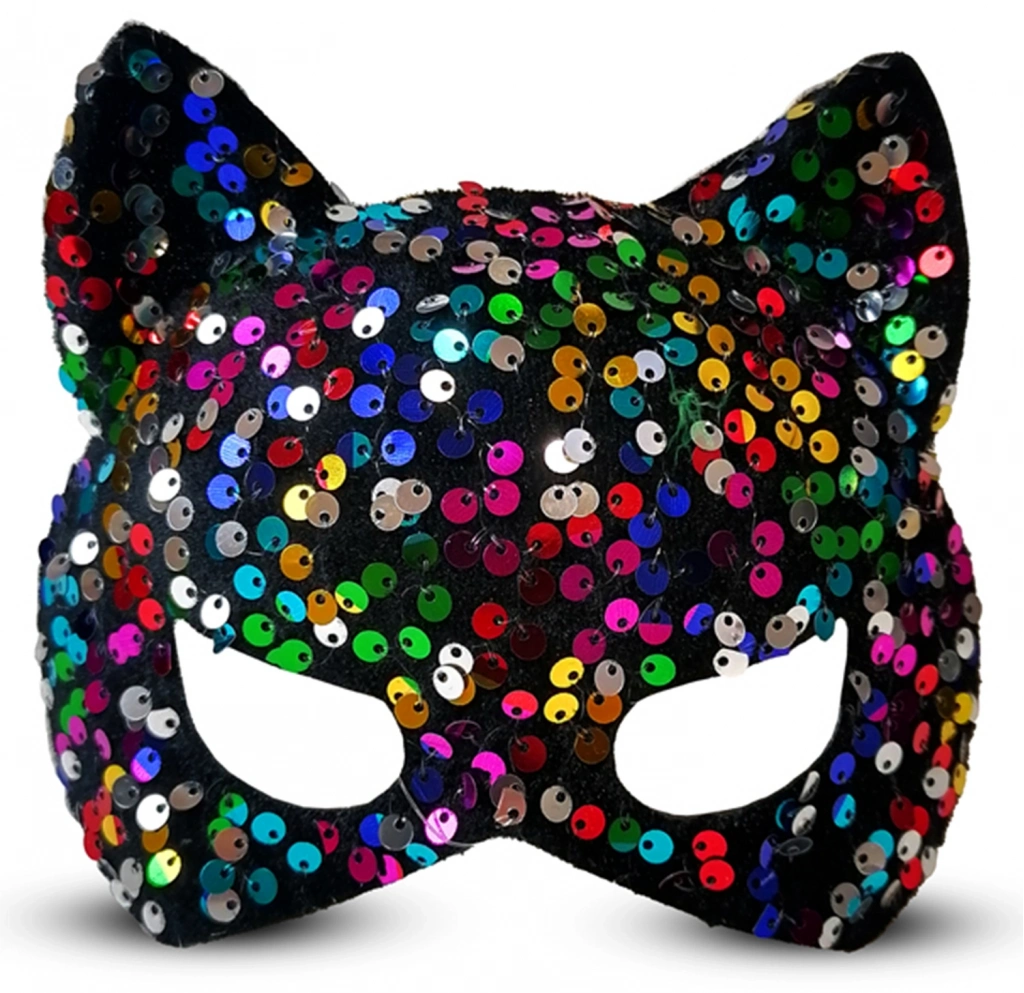Siyah Kadife Kumaş Üzerine Rengarenk Payetli Pullu Parti Maskesi 16x14 cm