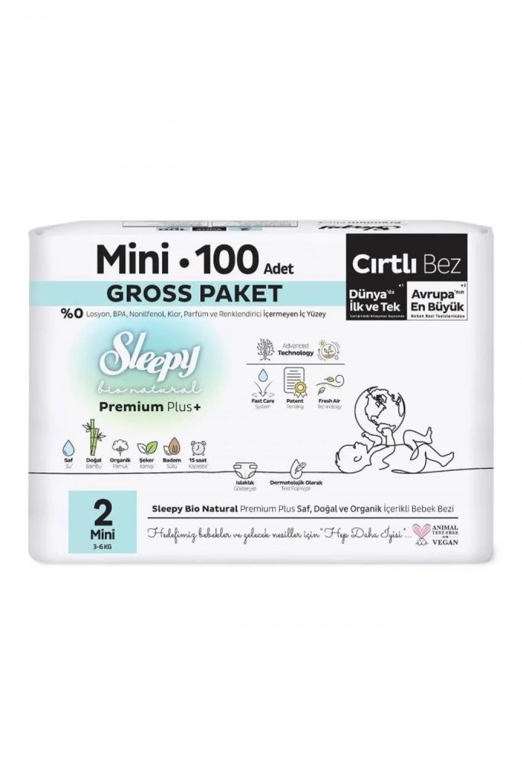 ® Bio Natural Bebek Bezi Gross Paket 2 Beden 3-6 Kg 100 Adet