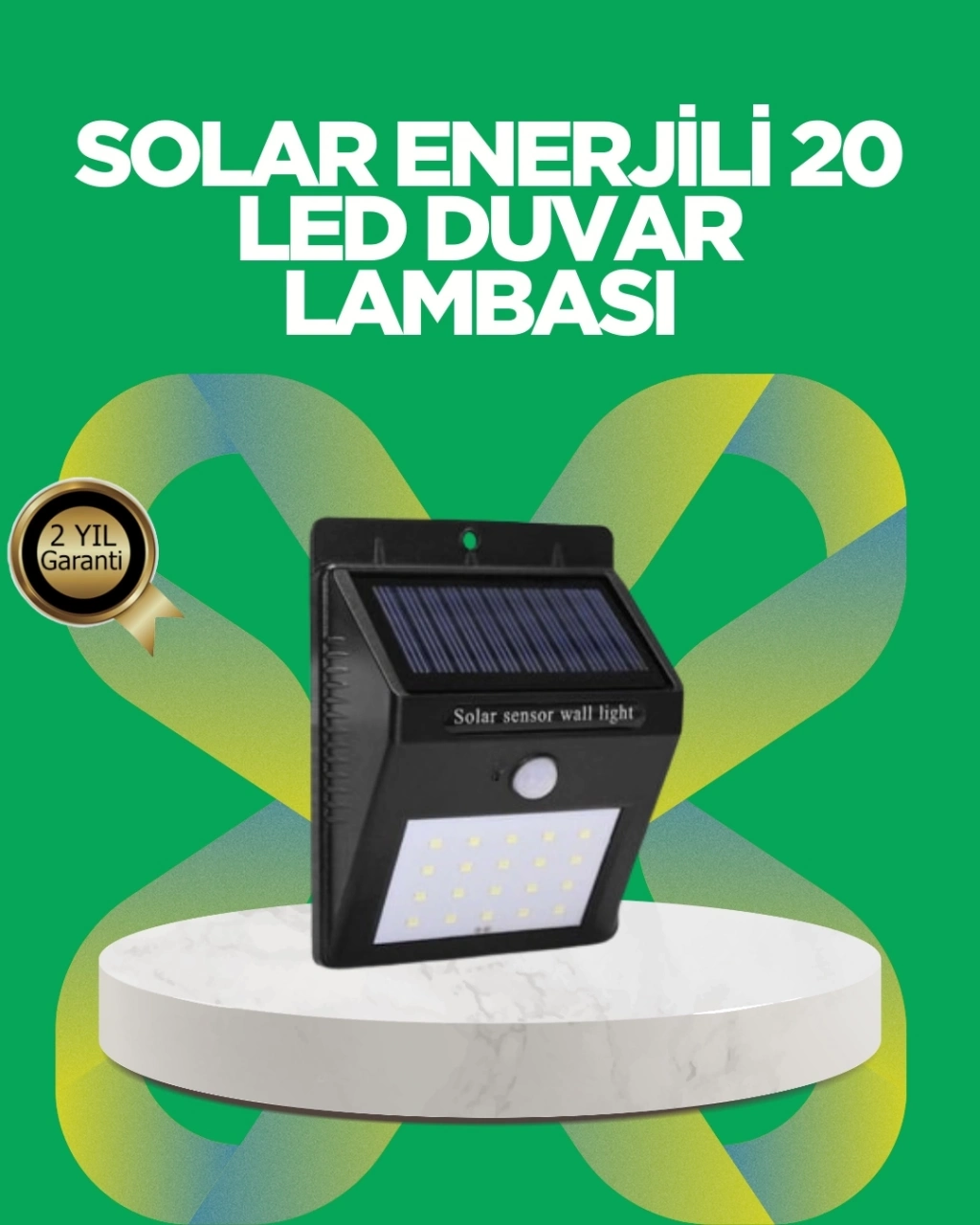 Solar Enerjili 20 LED Hareket Sensörlü Duvar Lambası