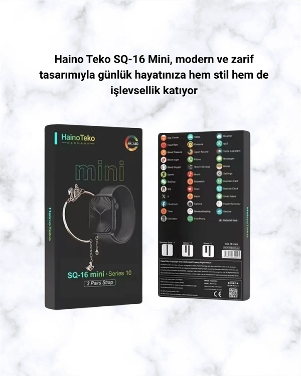 SQ-16 Mini Series 10 akıllı saat, şık tasarımı ve gelişmiş özellikleriyle öne çıkıyor. Hafif ve kompakt yapısı sayesinde her bileğe kolayca uyum sağlar. 3 farklı kordon (silikon, metal ve deri) ile tarzınıza uygun kombinler oluşturabilir, hediye bileklik ile görünümünüzü tamamlayabilirsiniz. Tüm telefonlarla uyumlu yapısıyla günlük kullanım için idealdir.
