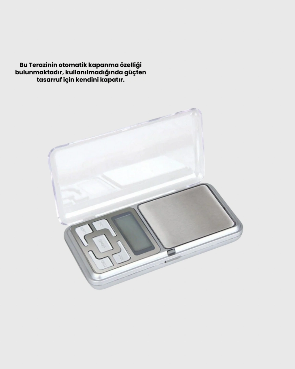 Kompakt tasarımı sayesinde cebinizde veya çantanızda rahatlıkla taşıyabileceğiniz bu dijital cep terazisi, hassas tartım gerektiren işlemler için ideal bir üründür. 300 grama kadar ölçüm kapasitesine sahiptir.Arka aydınlatmalı LCD ekranı, her ortamda net görüntü sunar. Otomatik kapanma fonksiyonu pil tasarrufu sağlar. Beş farklı ölçüm birimi ile farklı ihtiyaçlara uyum sağlar.“TARE” ve “PCS” fonksiyonları ile hem net tartım hem de adet sayımı yapılabilir. Kalibrasyon özelliği ile uzun süreli doğru ölçüm sağlanır. Kapaklı yapısı sayesinde darbelere karşı korunur ve geniş kefe olarak da kullanılabilir. 2 adet AAA pil ile çalışır.