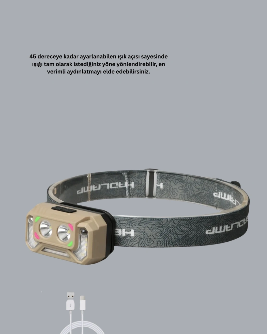 Wave sensörlü LED kafa lambası, yenilikçi hareket algılama teknolojisi sayesinde eller serbest kullanım sunar. Elinizi sallayarak ışığı kolayca açıp kapatabilir, düğme arama zahmetinden kurtulabilirsiniz. Bu özellik özellikle eldivenle çalışırken, kamp yaparken veya balık tutarken büyük kolaylık sağlar.45 dereceye kadar ayarlanabilen ışık açısı sayesinde ışık demetini tam olarak ihtiyacınız olan yöne yönlendirebilirsiniz. Güçlü LED aydınlatması, uzun mesafeli görüş sağlayarak gece aktivitelerinde güvenli bir kullanım sunar.Şarj edilebilir batarya sistemi sayesinde sürekli pil değiştirme ihtiyacını ortadan kaldırır. Tarım, balıkçılık, kamp, yürüyüş, trekking ve bisiklet gibi birçok açık hava aktivitesi için ideal bir yardımcıdır.