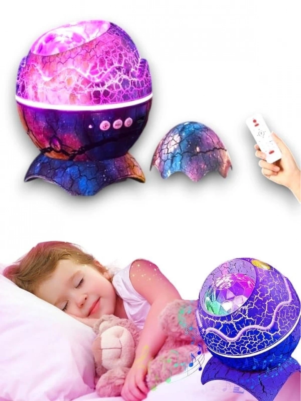 【Dinozor yumurta gece lambası projektör】 : Bulutsu'nun ve yıldız ışıklarının kombinasyonu tek başına veya kombinasyon halinde (14 renge kadar) açılabilir ve nebula akışının projeksiyonu rahatlatıcı bir atmosfer, 4 hız ve parlaklık yaratır. Yüksek çözünürlüklü yıldızlı galaksi duvar ve tavana yansıtılabilir, galakside seyahat ediyormuş gibi hissedeceksinizDinamik ritmli 【Bluetooth müzik hoparlörü/oyuncu 】 : Cihazı bir müzik çalara dönüştürmek için Bluetooth üzerinden bağladıktan sonra en sevdiğiniz müziği çalın. Işıklar müzik ritmini takip ederek yanıp sönecek ve dans edecek. Çocuklarımızla küçük bir müzik partisi açabiliriz【Beyaz gürültü projektörü Light】 19 yatıştırıcı sesler ve sıcak gece lambası dinlendirici gecelerde sizi sakinleştirecek, güzel yıldızlı gökyüzünde iyi bir şekilde düşmenize yardımcı olmak için yatmadan önce istediğiniz birini seçebilirsiniz.【Uzaktan kumanda ve otomatik kapanma zamanı】 : Renk aydınlatması, projeksiyon modu, parlaklık, hız, müzik seçimi, ses seviyesi ve zamanlayıcıyı kontrol etmenizi sağlayan bir uzaktan kumanda alırsınız. Otomatik kapanma zamanlayıcısı 1 veya 2 saate ayarlanabilir ve zamanlayıcıyı ayarlamayı unutursa, cihaz 4 saat sonra otomatik olarak kapanacaktır. Uzaktan kumanda ve otomatik zamanlayıcı kullanımı kolaydır ve belirli bir zamanda kapatmak için bir zamanlayıcı ayarlamaya çalışırken esneklik sağlar【İdeal hediye 】 : Desteğiniz için teşekkür ederiz, size kişiselleştirilmiş ve kaliteli ürünler sunmaya devam ediyoruz. Dinozor yumurtası dış tasarım, 3D renk boyama, artı serin kuzey ışıkları etkisi, sadece odanızı iyi dekore edemez ama aynı zamanda aileniz veya arkadaşlarınız için bir hediye olabilir.Paket detayları.1 * dinozor yumurtaları projektör1 * uzaktan kumanda1 * USB kablosu
