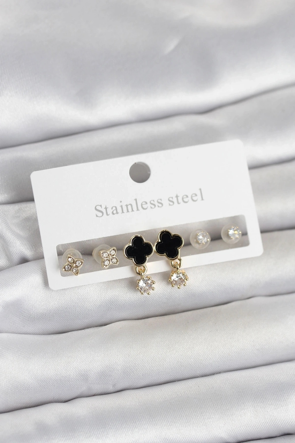 316L Çelik Gold Renk Yonca Detaylı Kadın Küpe Seti