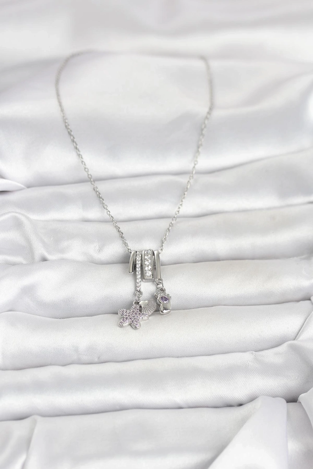 316L Çelik Gümüş Zirkon Taşlı Deniz Tema Charmlı Kadın Kolye