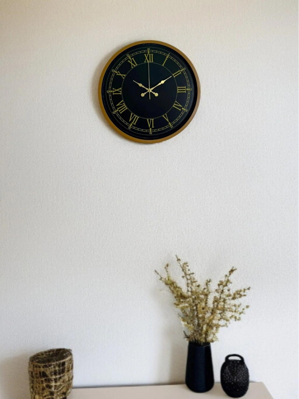 Roma rakamlı kadranı, saate klasik bir karakter kazandırırken; gold renkli akrep ve yelkovan detayları ürüne şık ve premium bir görünüm ekler. 36 cm çapı sayesinde duvarda ne çok büyük ne de küçük durur; dengeli ölçüsüyle dikkat çeker ve bulunduğu alanı tamamlar.