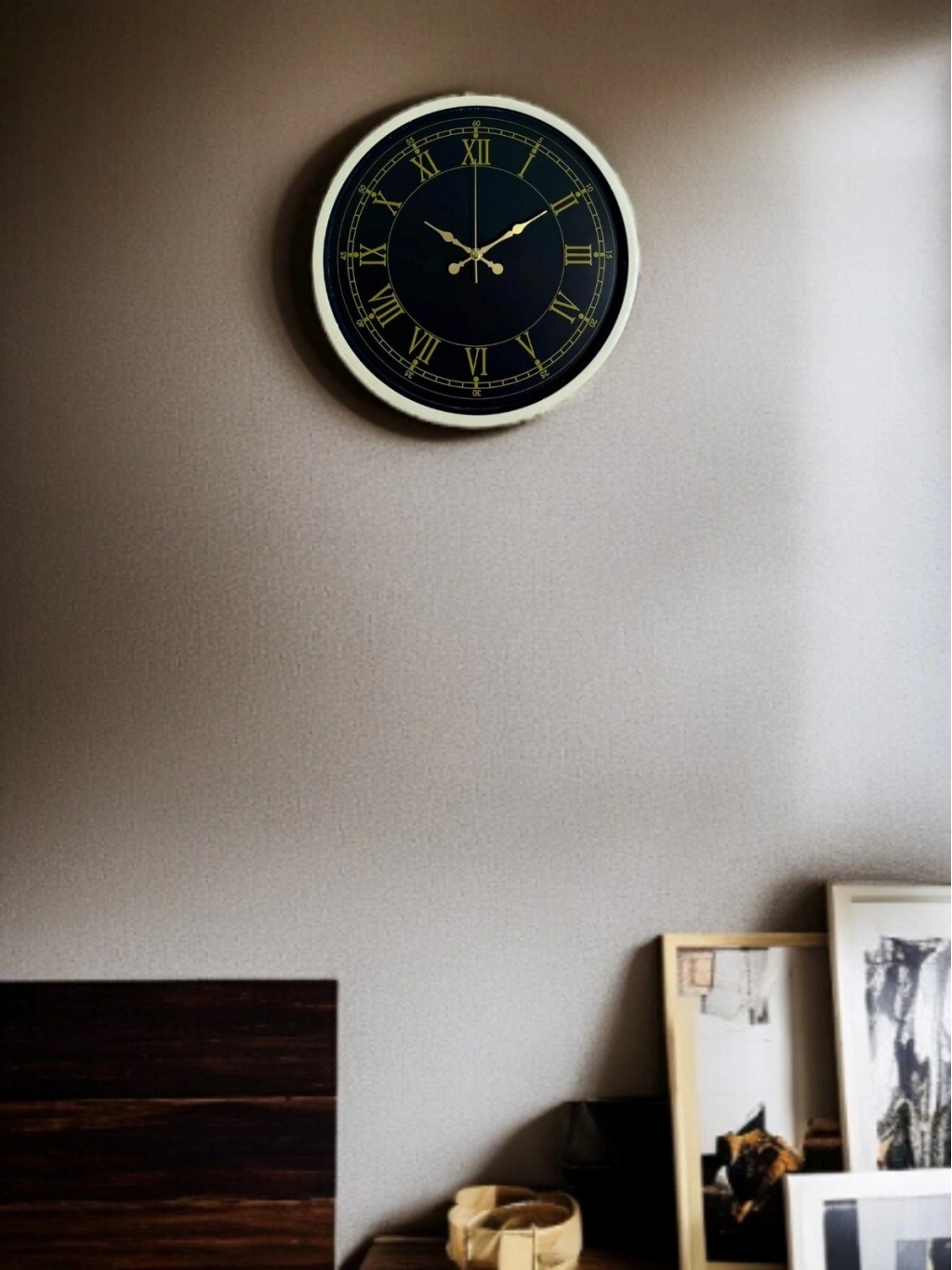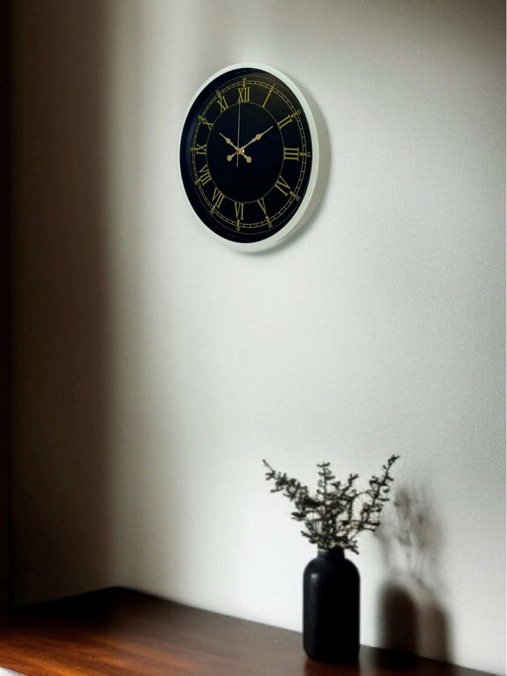 Krem renkli çerçevesi, siyah kadranı ve gold tonlu Roma rakamları ile tasarlanan bu 36 cm duvar saati; klasik dekorasyon sevenler için zamansız ve asil bir görünüm sunar. Detaylı dakika göstergeleri ve dengeli kadran yapısı sayesinde zamanı kolayca okumayı sağlar. Salon, oturma odası ve ofis gibi yaşam alanlarında dekorasyonu tamamlayan güçlü bir aksesuardır.