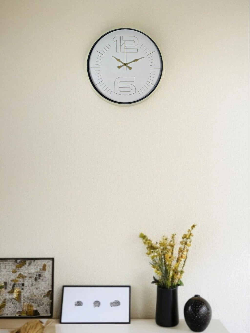 Krem renkli çerçevesi, açık tonlu kadranı ve gold detaylı akrep-yelkovan tasarımıyla öne çıkan bu 36 cm duvar saati; bulunduğu ortama ferah, modern ve şık bir atmosfer kazandırır. Üst ve alt kısımda yer alan büyük rakam tasarımı, saatin karakterini güçlendirirken sade çizgileriyle dikkat çekici bir görünüm sunar. Hem modern hem de klasik dekorasyonlara kolaylıkla uyum sağlar.