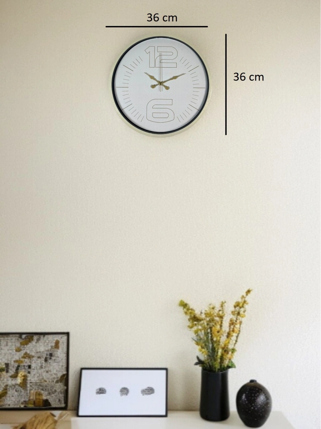 36 cm ideal çapı sayesinde duvarda ne çok büyük ne de küçük durur; dengeli ölçüsüyle dekorasyonu tamamlar. Şıklığı ve işlevselliği bir arada sunan bu krem duvar saati, yaşam alanlarının vazgeçilmez bir parçası olmaya adaydır.