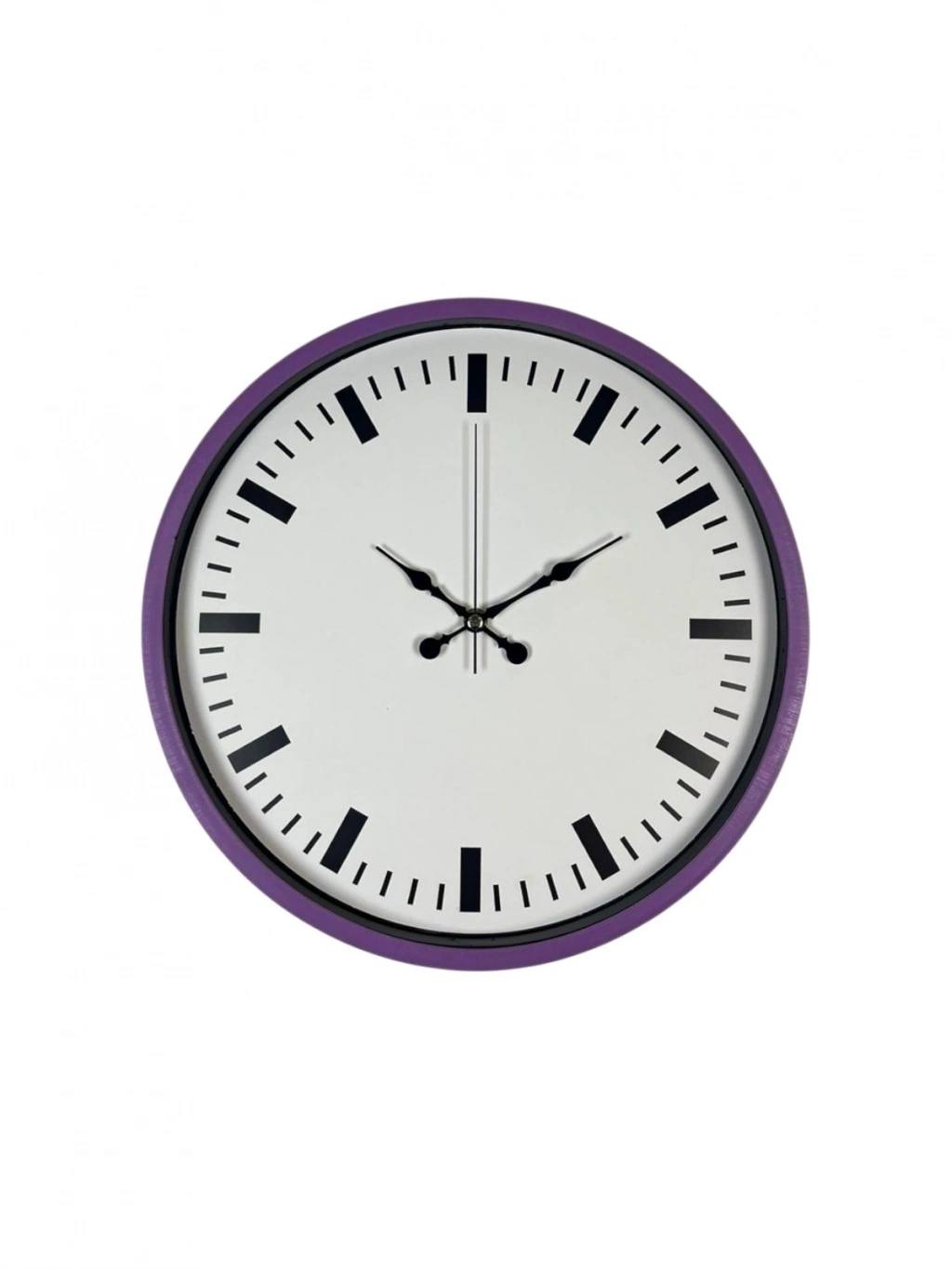 Şık mor çerçevesi ve sade beyaz kadranıyla tasarlanan bu 36 cm duvar saati, yaşam alanlarına modern ve farklı bir dokunuş kazandırır. Minimal indeks tasarımı ve net kontrastı sayesinde saati uzaktan dahi kolayca okumak mümkündür.