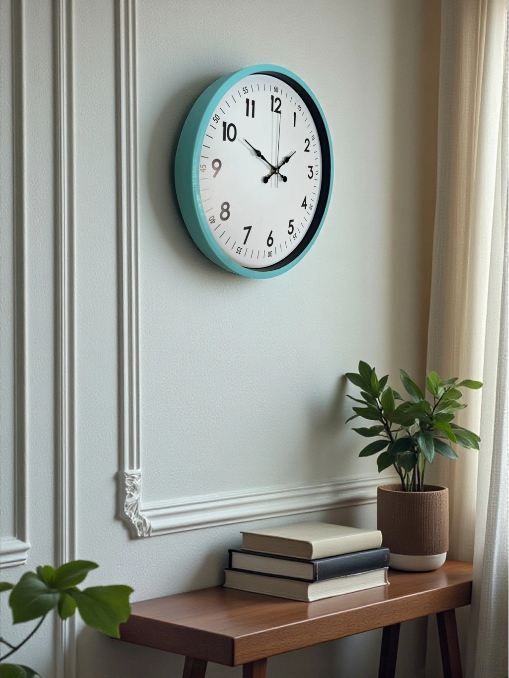 Canlı ve ferah bir renk tonuna sahip olan bu 36 cm turkuaz duvar saati, bulunduğu ortama modern, enerjik ve taze bir hava katmak için tasarlandı. Turkuaz çerçevesi özellikle genç ve dinamik dekorasyonlara mükemmel uyum sağlar; sade beyaz kadranı, büyük okunaklı rakamları ve ayrıntılı dakika göstergeleri (05, 10, 15...) sayesinde zaman takibini çok daha kolay hale getirir. Hem dekoratif hem de fonksiyonel bir saat arayanlar için ideal bir tercihtir.