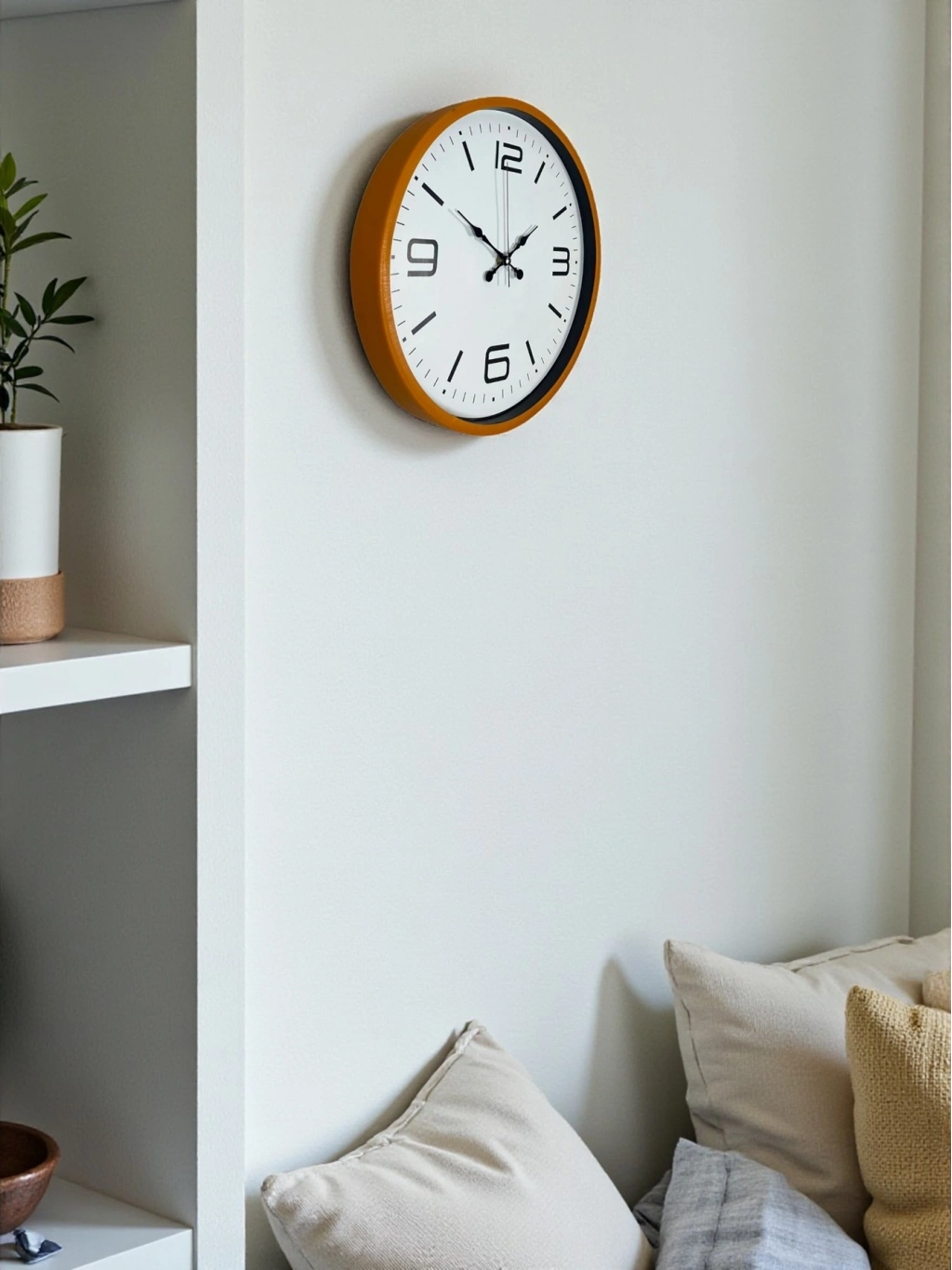 ÜRÜN AÇIKLAMASI Canlı ve modern bir tasarıma sahip olan bu 36 cm turuncu duvar saati, bulunduğu ortama enerji ve sıcaklık katan dikkat çekici bir dekor ürünüdür.; Turuncu çerçevesi ile mekâna modern, enerjik ve pozitif bir hava katar.; Büyük siyah rakamları, sade beyaz kadranı ve detaylı dakika göstergeleri (05, 10, 15..; ) sayesinde saati uzaktan bile rahatlıkla okumayı sağlar.; Hem dekoratif hem de fonksiyonel bir saat arayan kullanıcılar için ideal bir tercihtir.; Saatin ön yüzeyinde kullanılan gerçek cam, ürünün en önemli kalite detaylarından biridir.; Gerçek cam; plastik camlara göre çok daha dayanıklı, çizilmeye karşı daha dirençli ve zamanla sararmayan bir yapıya sahiptir.; Işığı doğru kırarak kadranın her açıdan net görünmesini sağlar ve ürüne premium bir şıklık kazandırır.; Temizlenmesi kolaydır ve yıllar boyunca ilk günkü parlaklığını korur.; Sessiz çalışan akar saniye (sweep) mekanizması, akıcı hareketiyle tıkırtı sesi olmadan çalışır.; Bu sayede saat; yatak odası, çalışma odası, ofis, çocuk odası, kütüphane ve sessiz ortam gerektiren tüm yaşam alanları için uygundur.; Rahatsız edici ses oluşturmaz, gün boyu konforlu kullanım sağlar.; Dayanıklı ve hafif plastik gövdesi sayesinde kolayca duvara monte edilir.; Turuncu rengin modern ve enerjik havası; genç odalarında, ofislerde, mutfaklarda ve renkli dekorasyonlarda mükemmel bir tamamlayıcıdır.