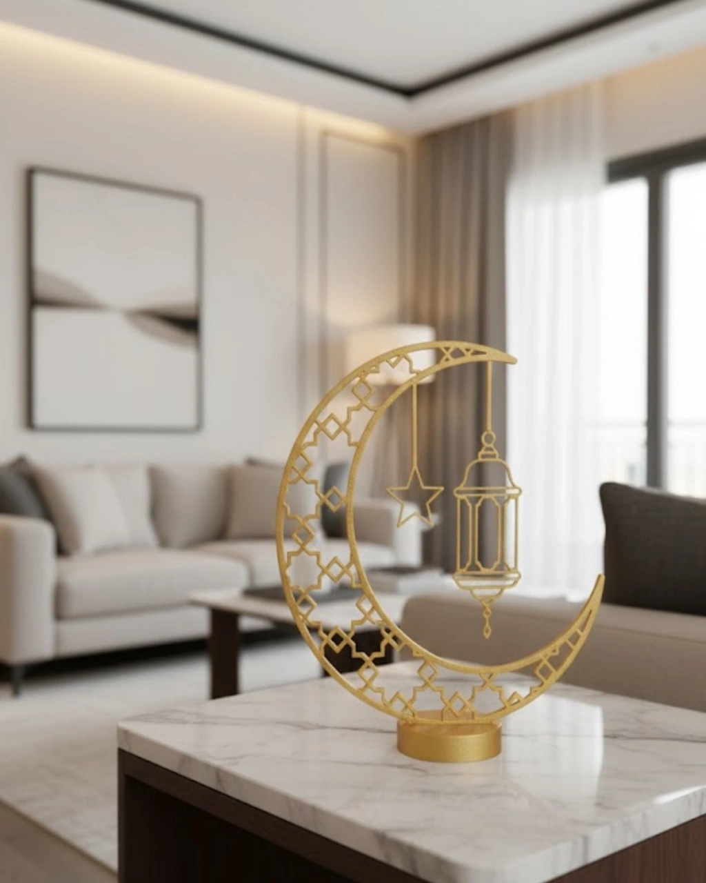 ® 3D Hilal Cami Dekor Özel Baskı 20x20 cm Şık Masa Üstü