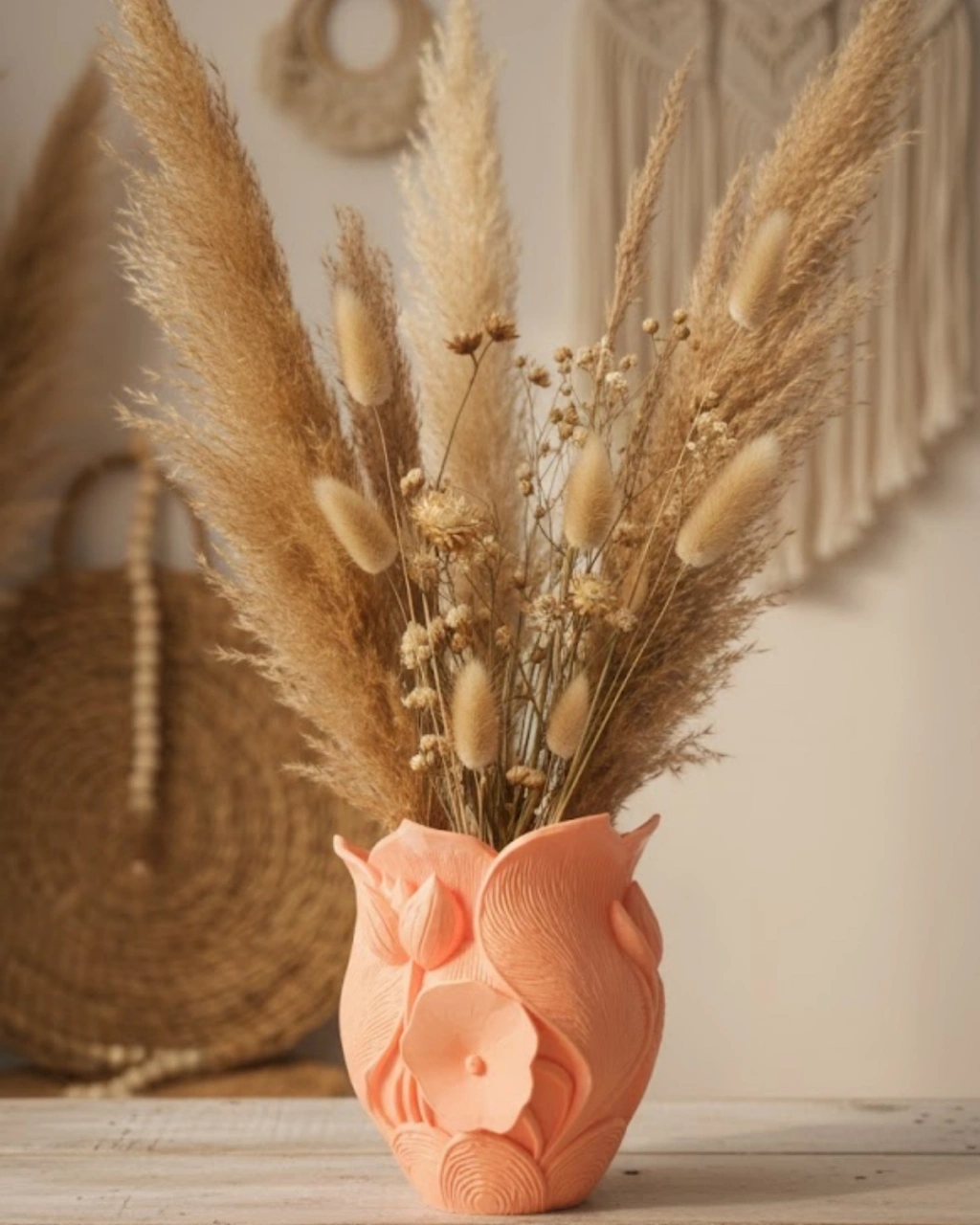 Modern iç mekân tasarımlarında fark yaratmak isteyenler için tasarlanan turuncu 3D çiçekli vazo, estetik ve sıcak tonları bir araya getirir. Ürünün yüzeyinde yer alan çiçek kabartmaları, detaylı işçiliği sayesinde ışıkla birlikte gölge oyunları oluşturur. Bu sayede vazo gün ışığında farklı, akşam aydınlatmasında farklı bir karakter kazanır.Turuncu ton, pozitif enerji ve canlılık hissi verir. Özellikle açık renk duvarlar, bej koltuklar veya ahşap mobilyalar ile kombinlendiğinde ortamın havasını tamamen değiştirir. Minimal dekor sevenler için tek başına bir odak noktası oluşturur; daha zengin dekorasyonlarda ise tamamlayıcı bir aksesuar olarak kullanılır.İçine yerleştirilecek kuru çiçekler, lavanta demeti veya beyaz yapay çiçekler ile kontrast oluşturabilirsiniz. Pampas otu ile kombinlendiğinde bohem bir hava, beyaz çiçeklerle kullanıldığında modern bir stil ortaya çıkar.Dayanıklı ve hafif yapısı sayesinde kolay taşınabilir. Hem dekoratif hem fonksiyonel kullanım sunar. Hediye alternatifi olarak da tercih edilebilecek şık ve farklı bir üründür.