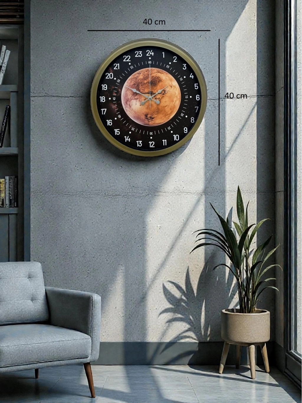 Merkezinde yer alan gezegen temalı özel tasarımı, 24 saatlik zaman skalası ve detaylı kadran yapısıyla sıradan saat anlayışını tamamen değiştirir.