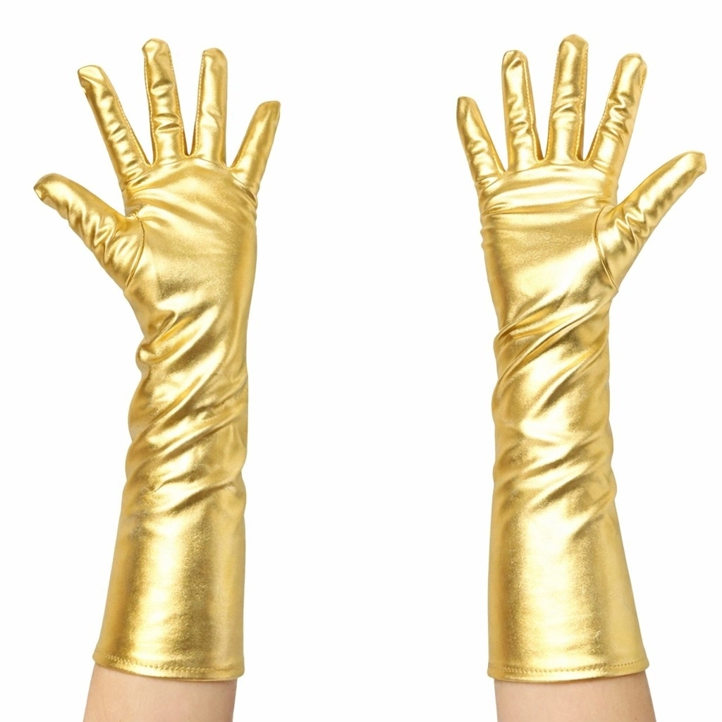 Altın Renk Dirsek Altı Lüks Saten Eldiven 40 cm