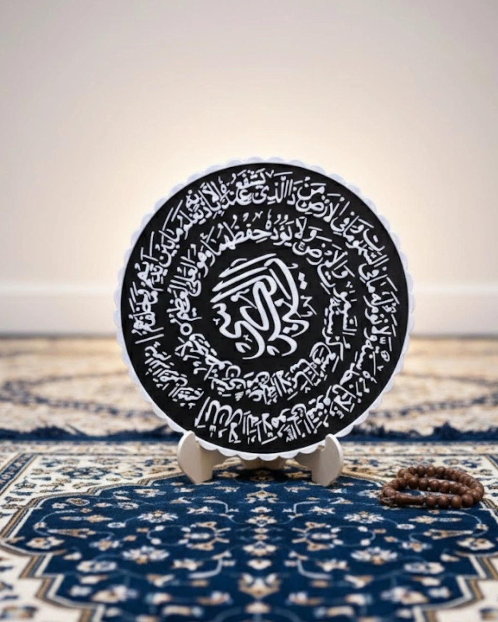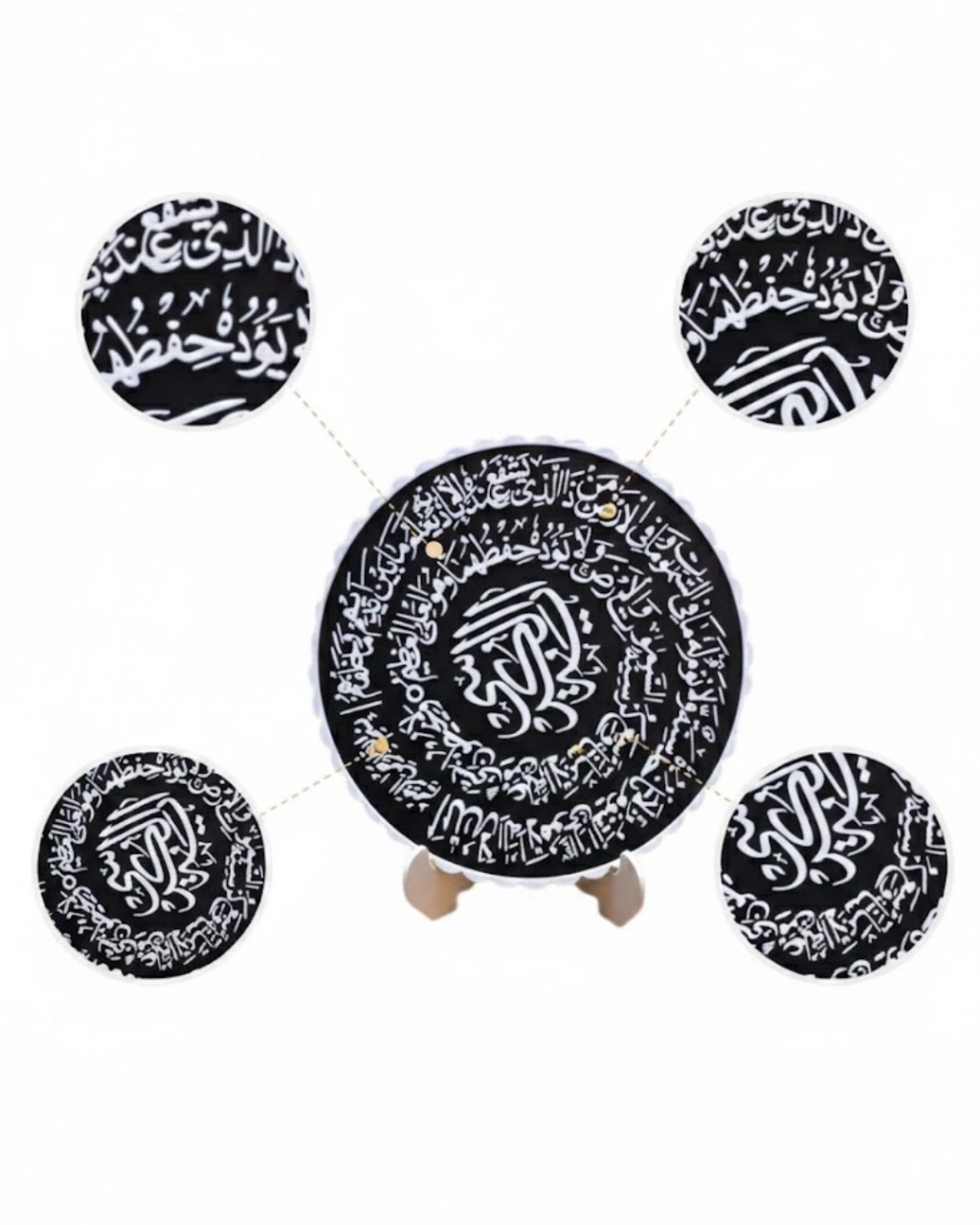 Ayetel Kürsi yazılı masaüstü pano, modern yaşam alanlarında manevi atmosfer oluşturmak isteyenler için tasarlanmıştır. Siyah arka planı ve beyaz yazı detayı sayesinde hem klasik hem çağdaş dekorasyonlara uyum sağlar.Detaylı yazı kompozisyonu estetik bir çerçeve oluştururken merkezdeki tasarım güçlü bir vurgu yaratır. Bu sayede ürün, bulunduğu ortamda dikkat çeken bir odak noktası haline gelir.Standlı yapısı sayesinde sehpa, konsol, raf veya masa üzerinde kolaylıkla sergilenebilir. Yer kaplamayan kompakt yapısı ile minimal dekorasyon sevenler için uygundur.Manevi anlamı yüksek olan bu tasarım, hem kendiniz için hem de sevdikleriniz için değerli bir hediye alternatifi sunar.