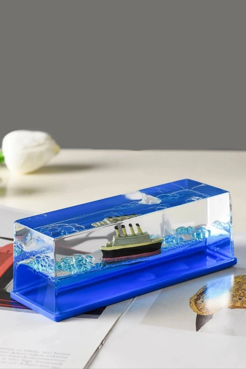 Bu özel tasarımlı hediyelik ürün, hem ev hem de ofis dekorasyonu için ideal bir seçenektir. Gemi figürüyle tasarlanmış olan bu dekoratif obje, özel anları hatırlatmak veya ortama şıklık katmak için kullanılabilir.