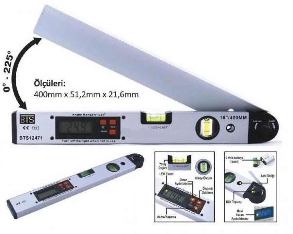 ® Bts 12471 Dijital Açı Ölçerli Su Terazisi 40 cm