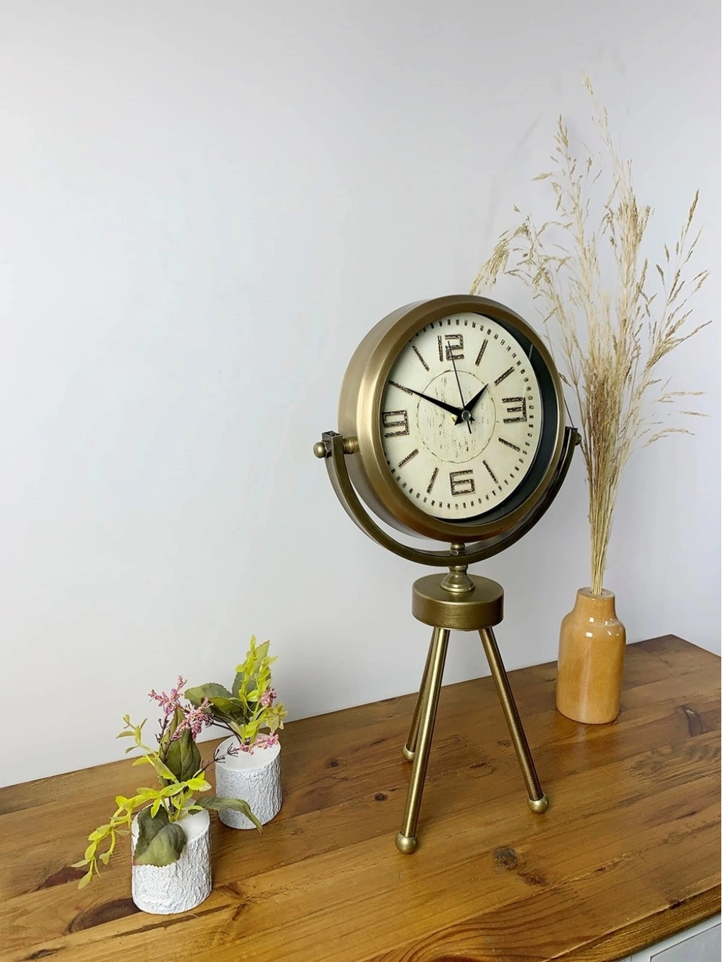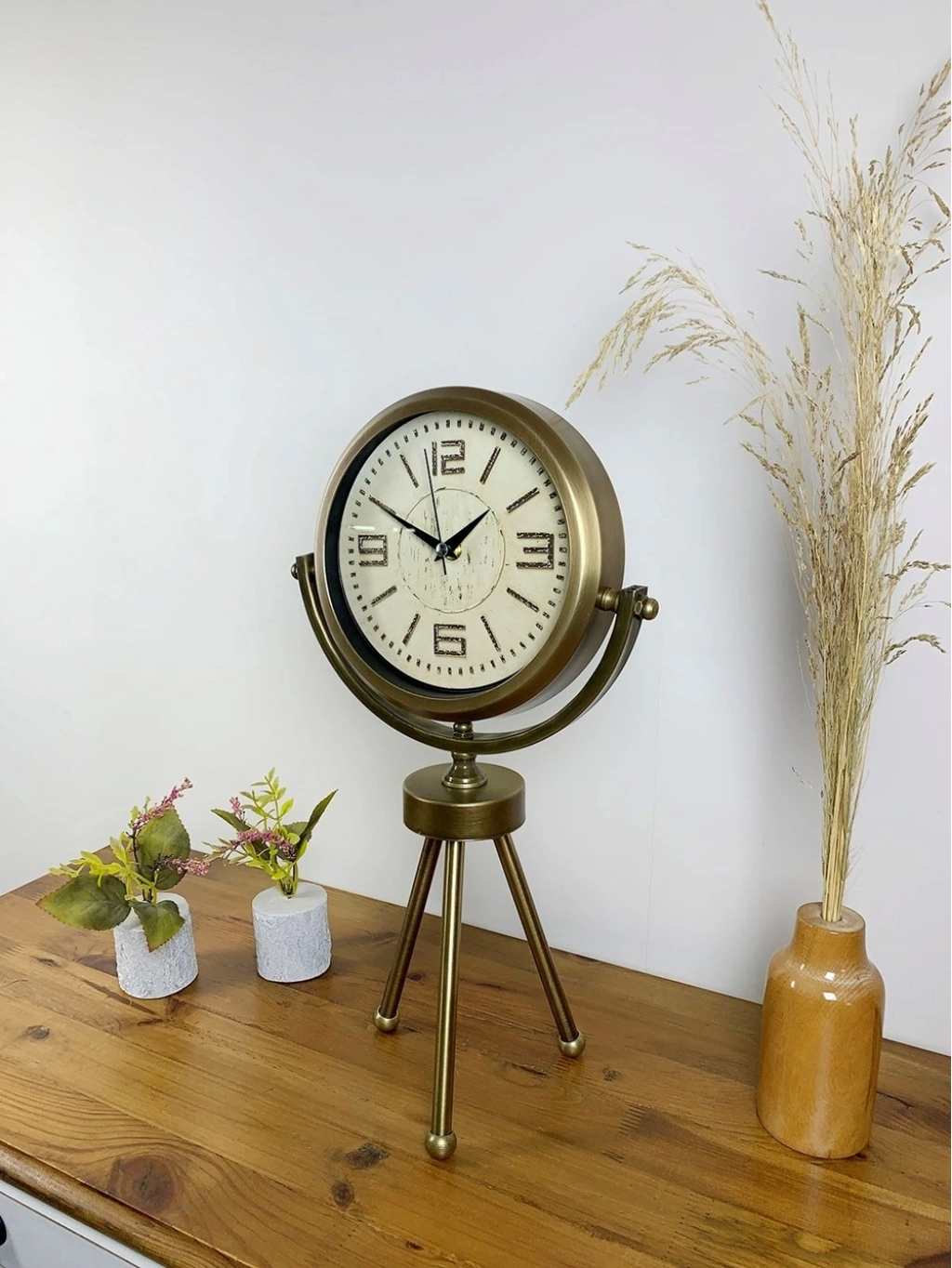 ® Eskitme Metal Mini Tripod Vintage Masa Saati 45×26 cm