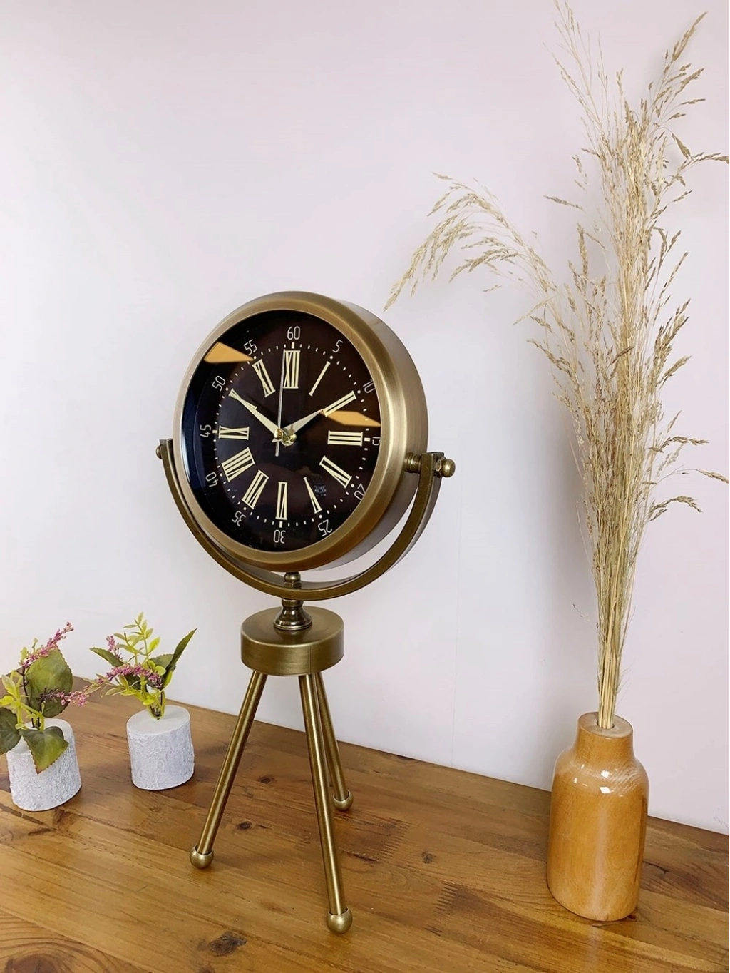 Eskitme Metal Mini Tripod Zarif Masa Saati 45×26 cm