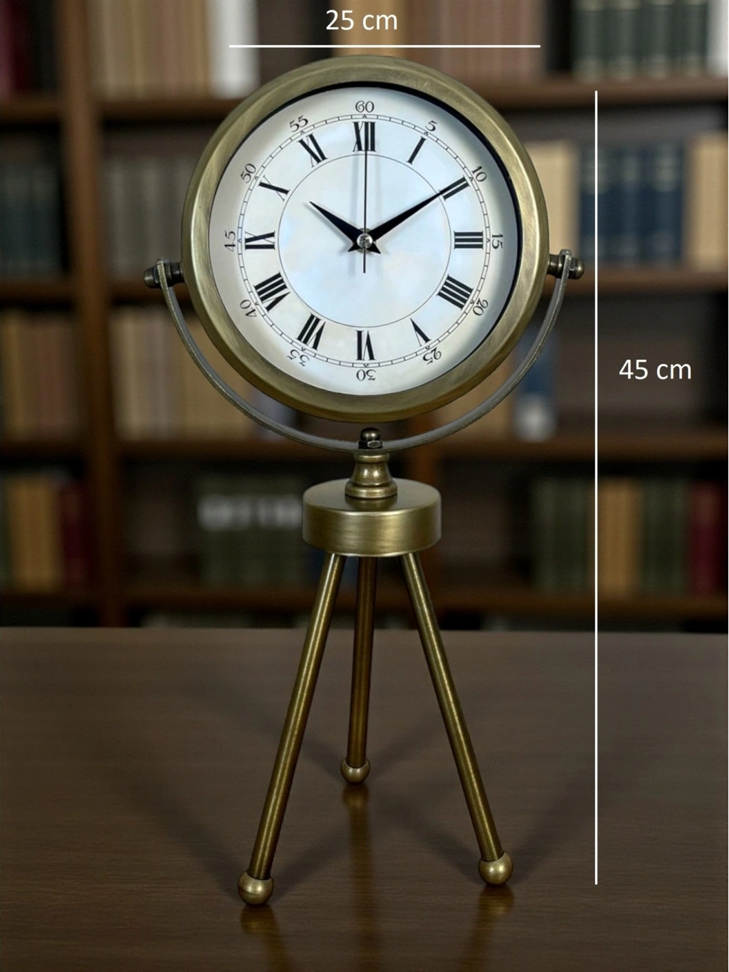 ® Eskitme Roma Rakamlı Tripod Üç Ayaklı Metal Masa Saati