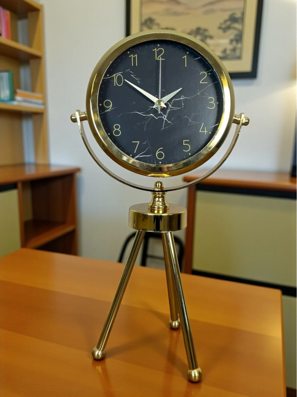 ® Gold & Black Uyumlu Şık Üç Ayaklı Metal Masa Saati