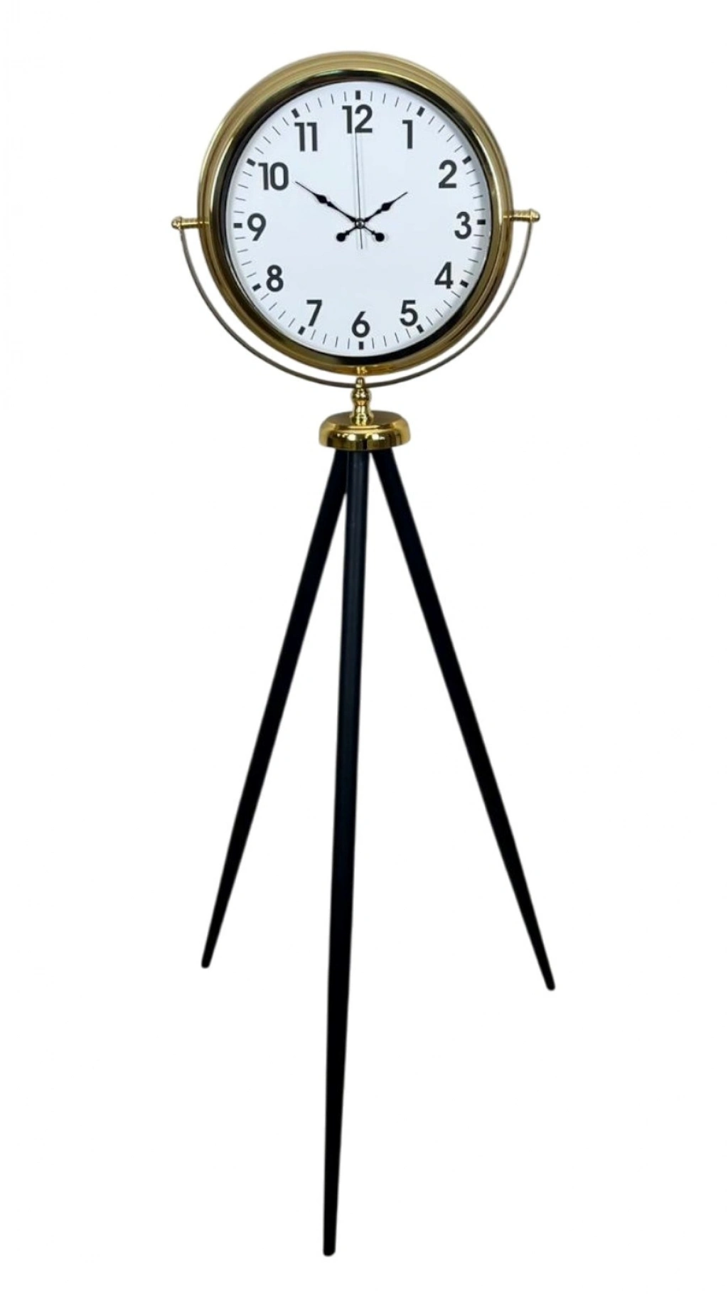Zamana estetik bir duruş kazandıran bu gold tripod ayaklı dekoratif saat, klasik çizgileri modern detaylarla birleştirerek yaşam alanlarınıza güçlü bir karakter katar. Büyük boyutlu tasarımı sayesinde yalnızca bir saat değil, aynı zamanda mekânın odak noktası haline gelen özel bir dekor parçasıdır.