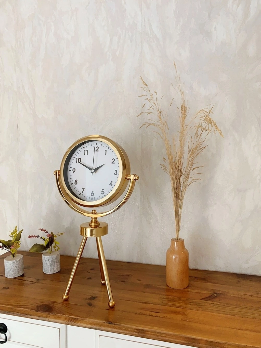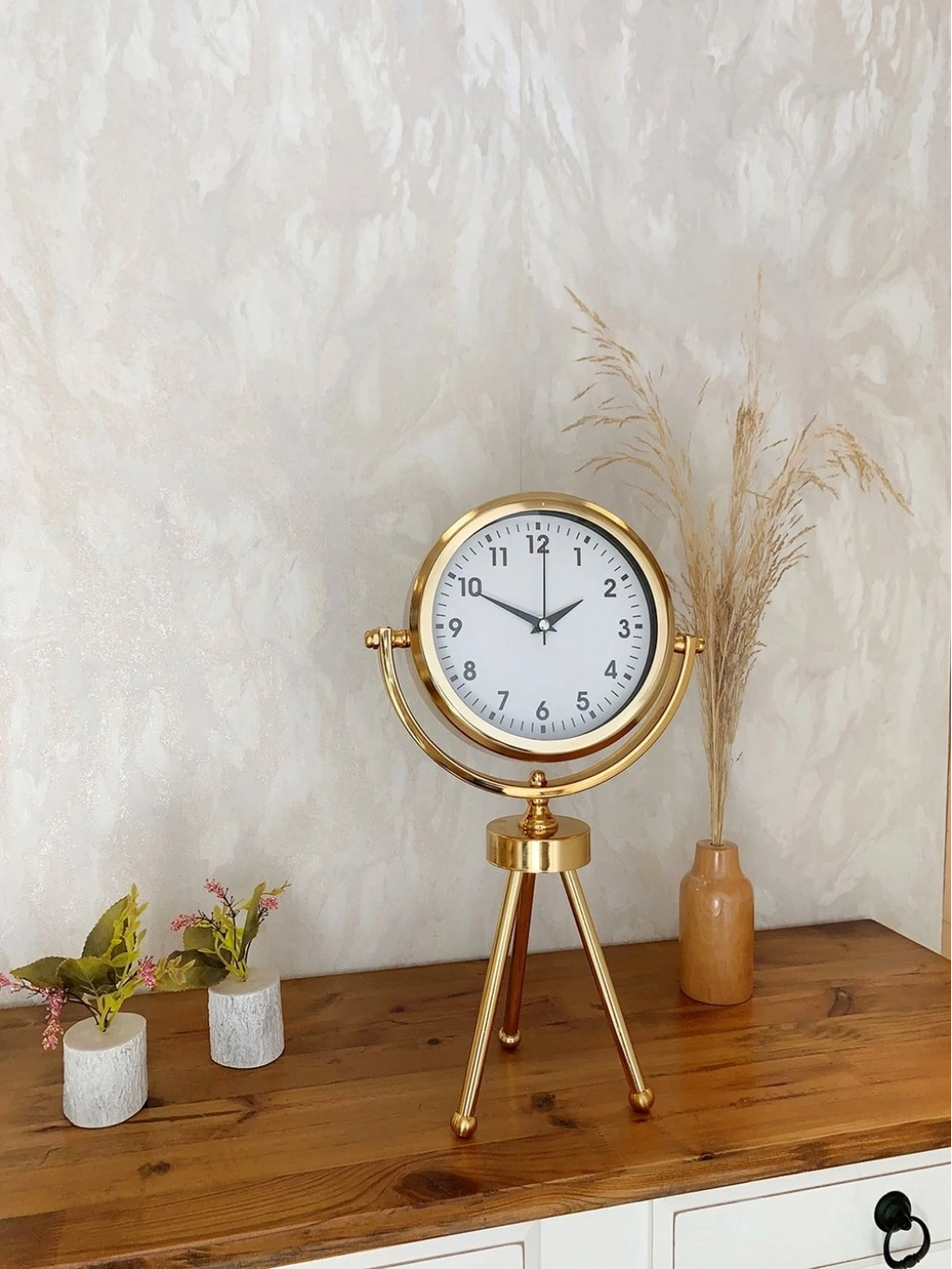 Gold Metal Mini Tripod Lüks Masa Saati 45×26 cm