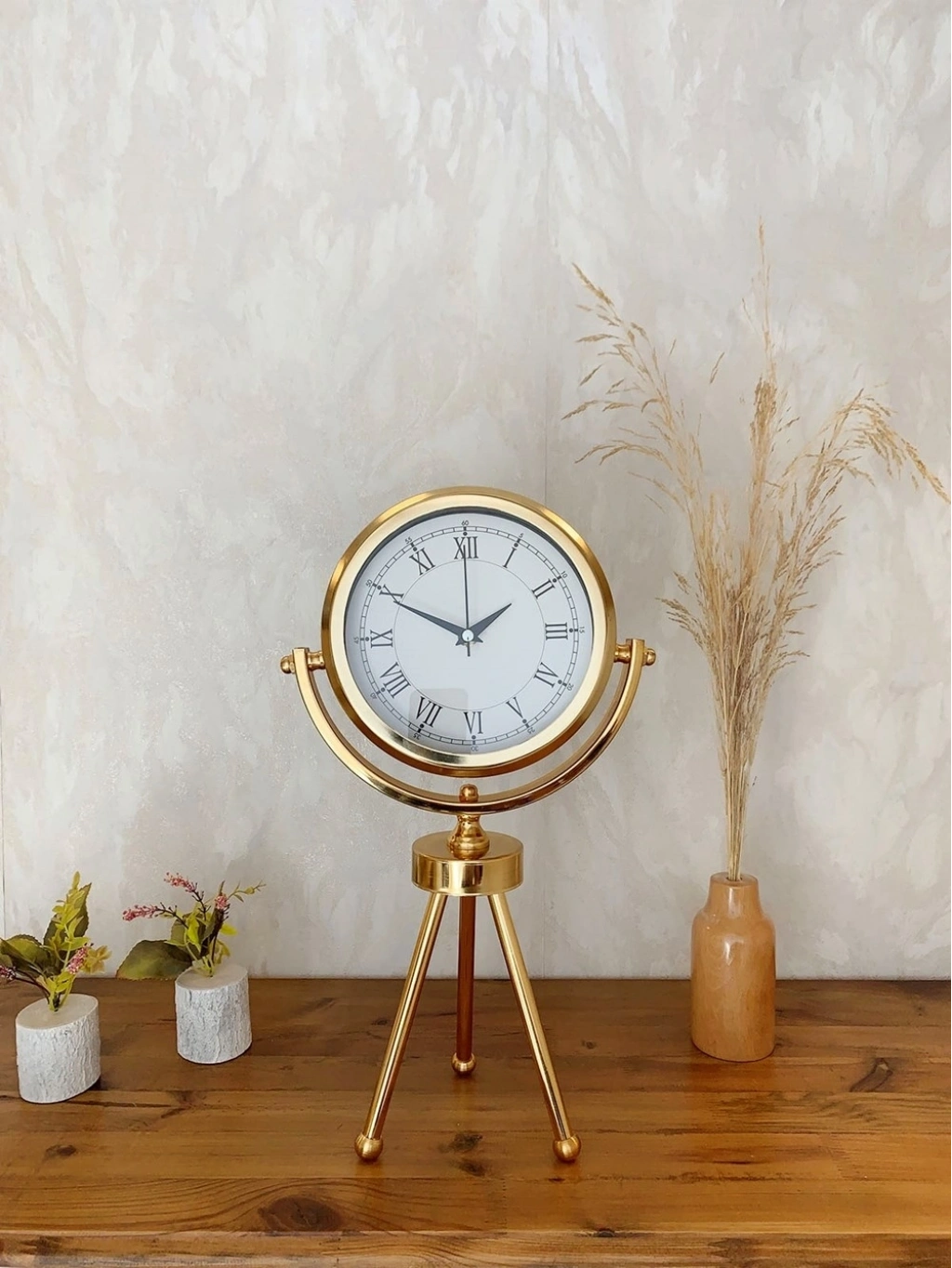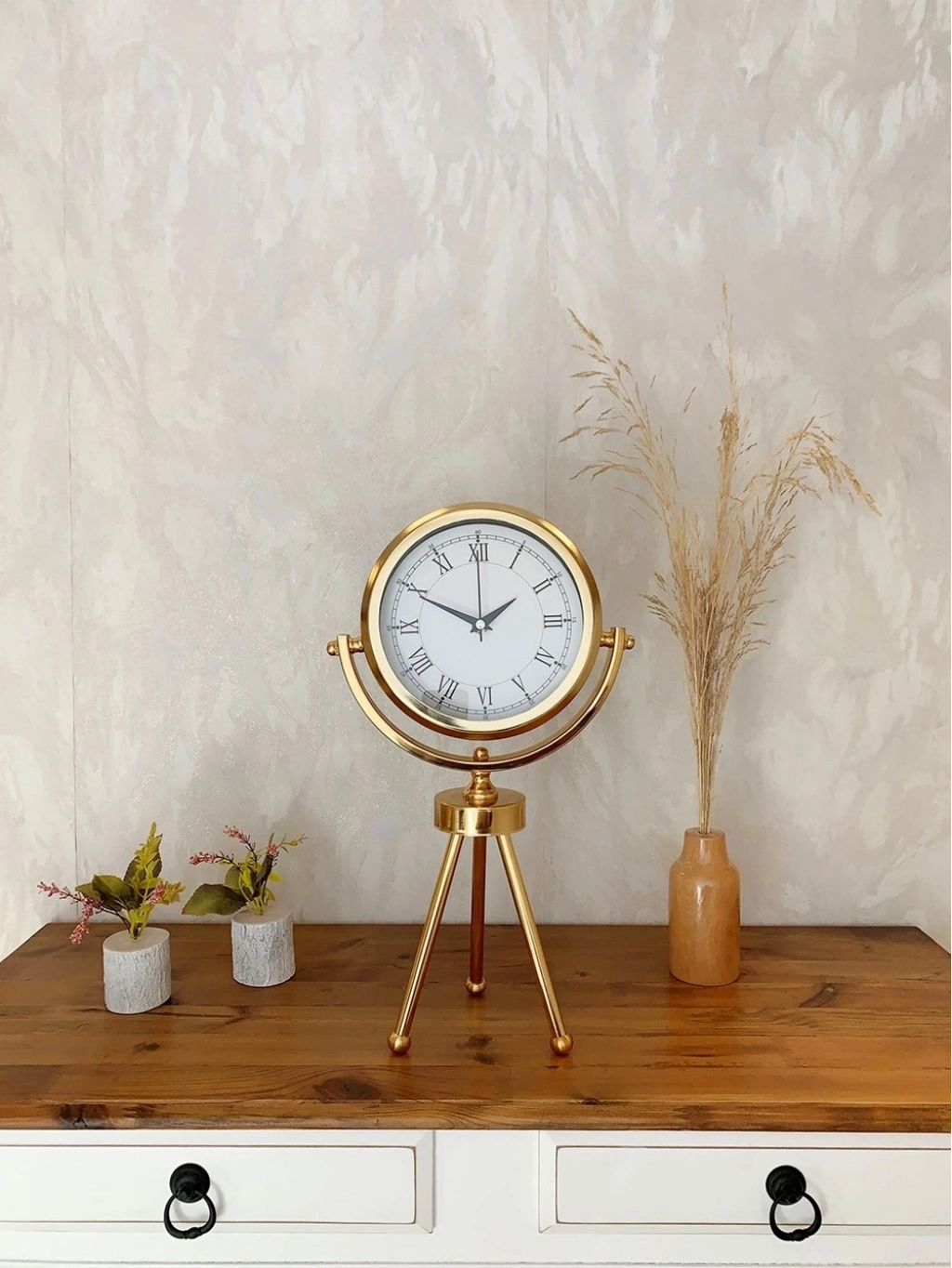 Gold Metal Mini Tripod Retro Masa Saati 45×26 cm
