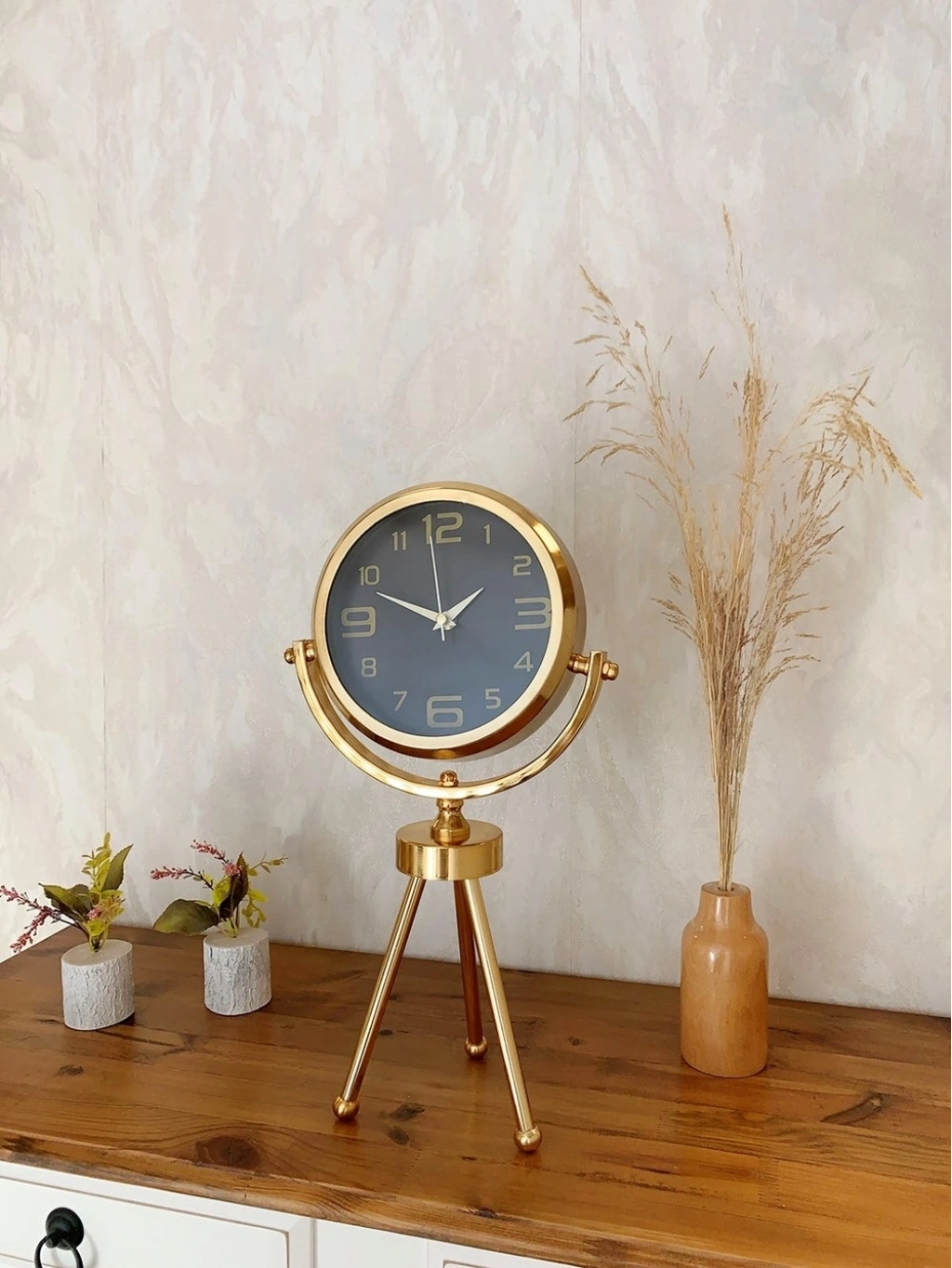 ® Gold Metal Mini Tripod Siyah İnci Masa Saati 45×26 cm – Şık ve Modern Dekoratif Tasarım