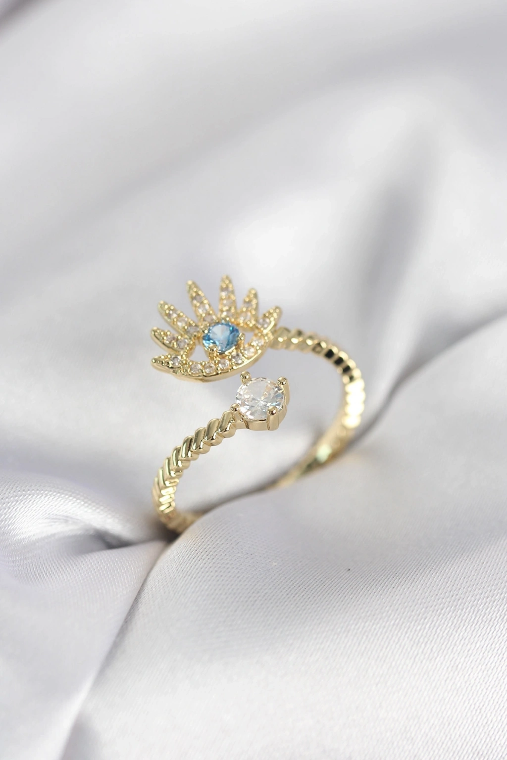 ® Gold Renk Göz Model Zirkon Taşlı Kadın Yüzük
