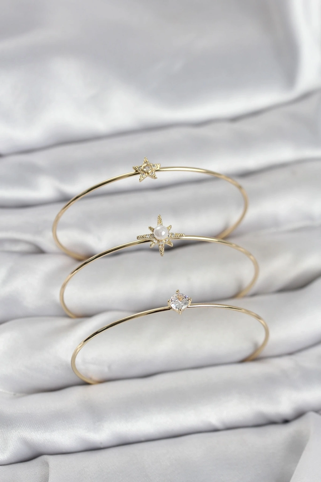 ® Gold Renk Kutup Yıldızı Model Zirkon Taşlı 3'lü Kadın Bileklik Kombini