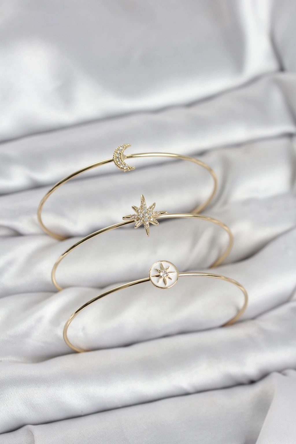 ® Gold Renk Zirkon Taşlı Kutup Yıldızı Model 3'lü Kadın Bileklik Kombini