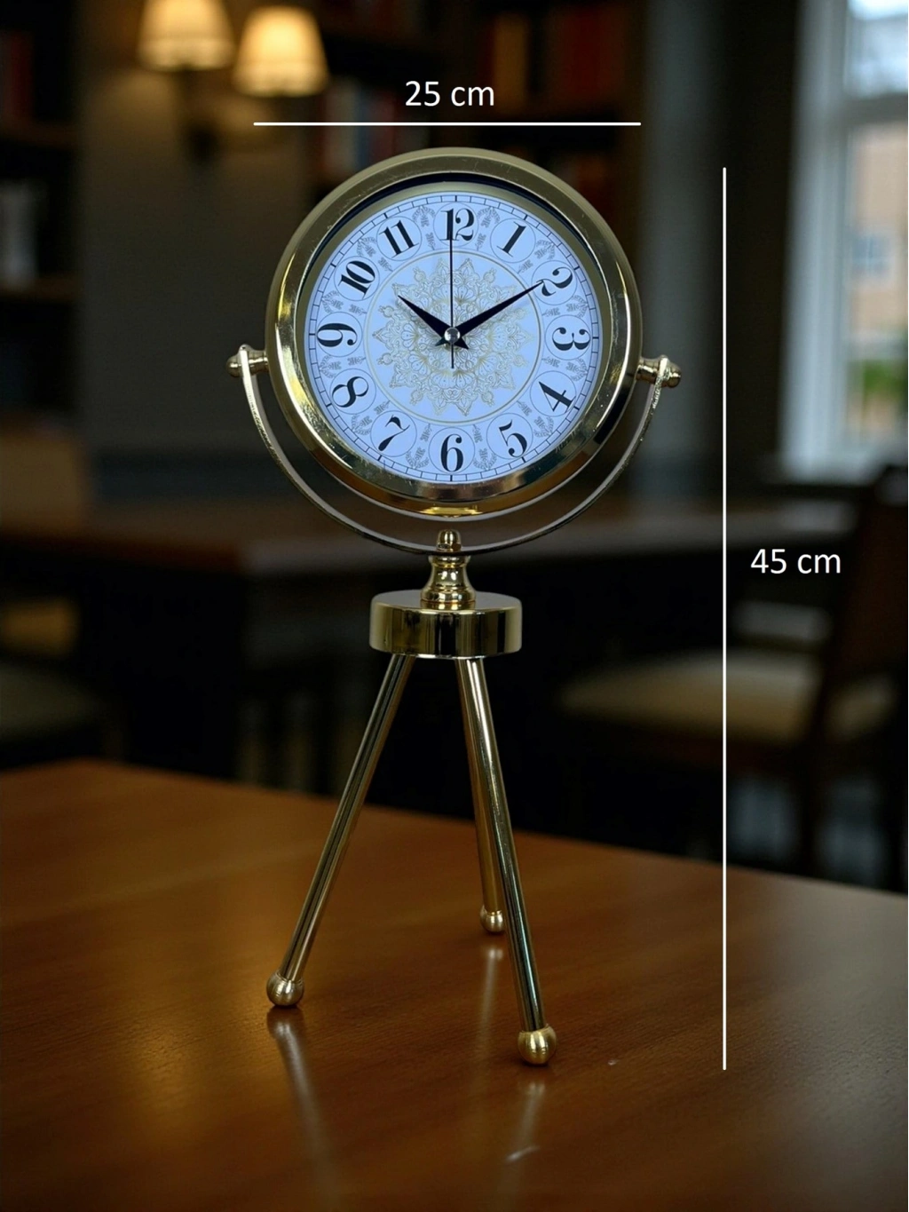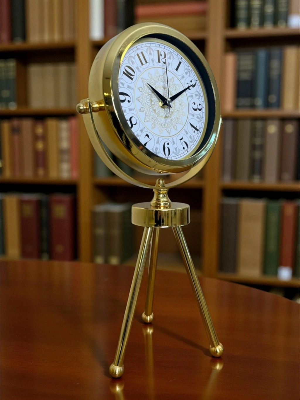 ® Gold Royal Motifli Üç Ayaklı Metal Masa Saati