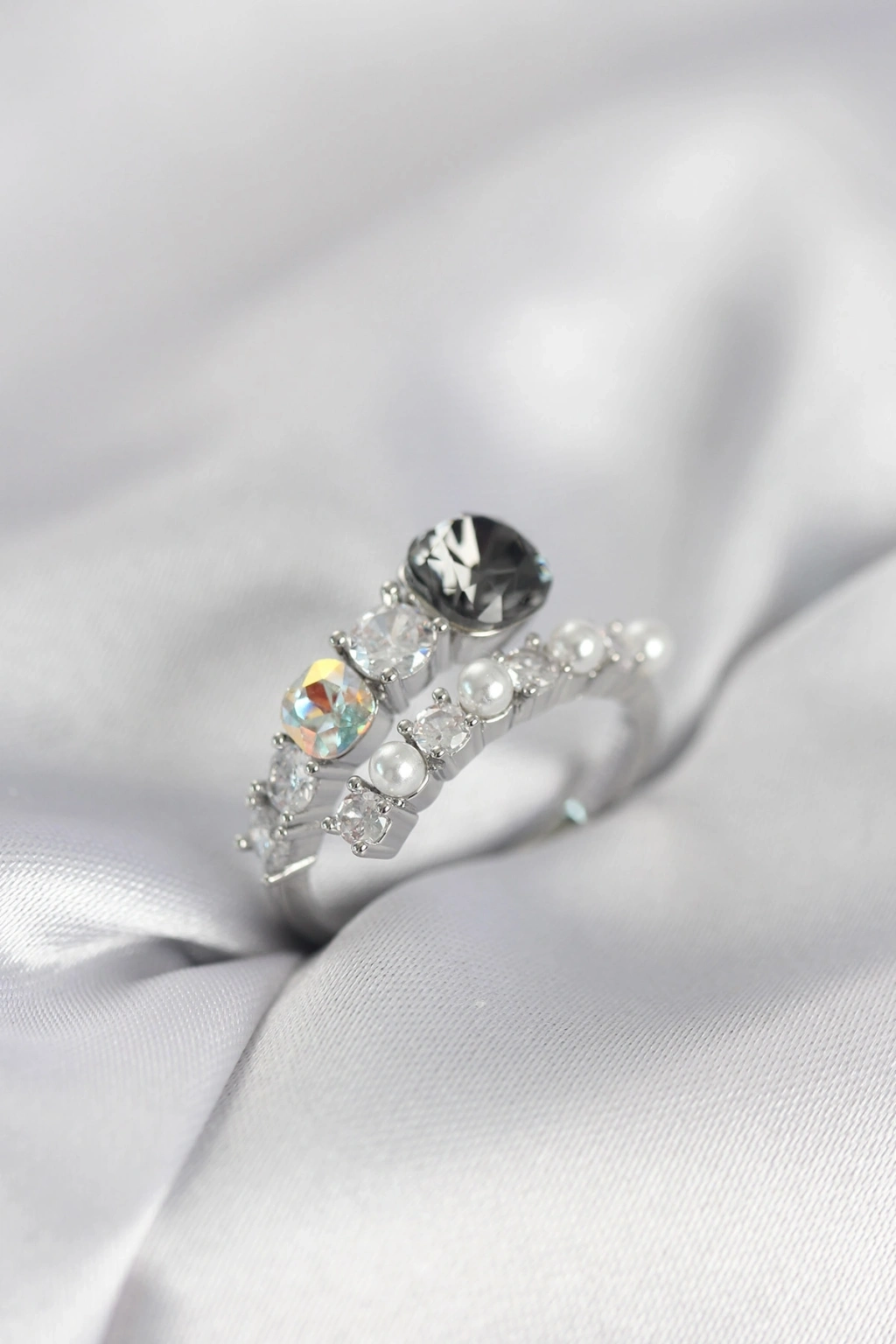 ® Gümüş Renk Pirinç Zirkon Taşlı İncili Kadın Yüzük