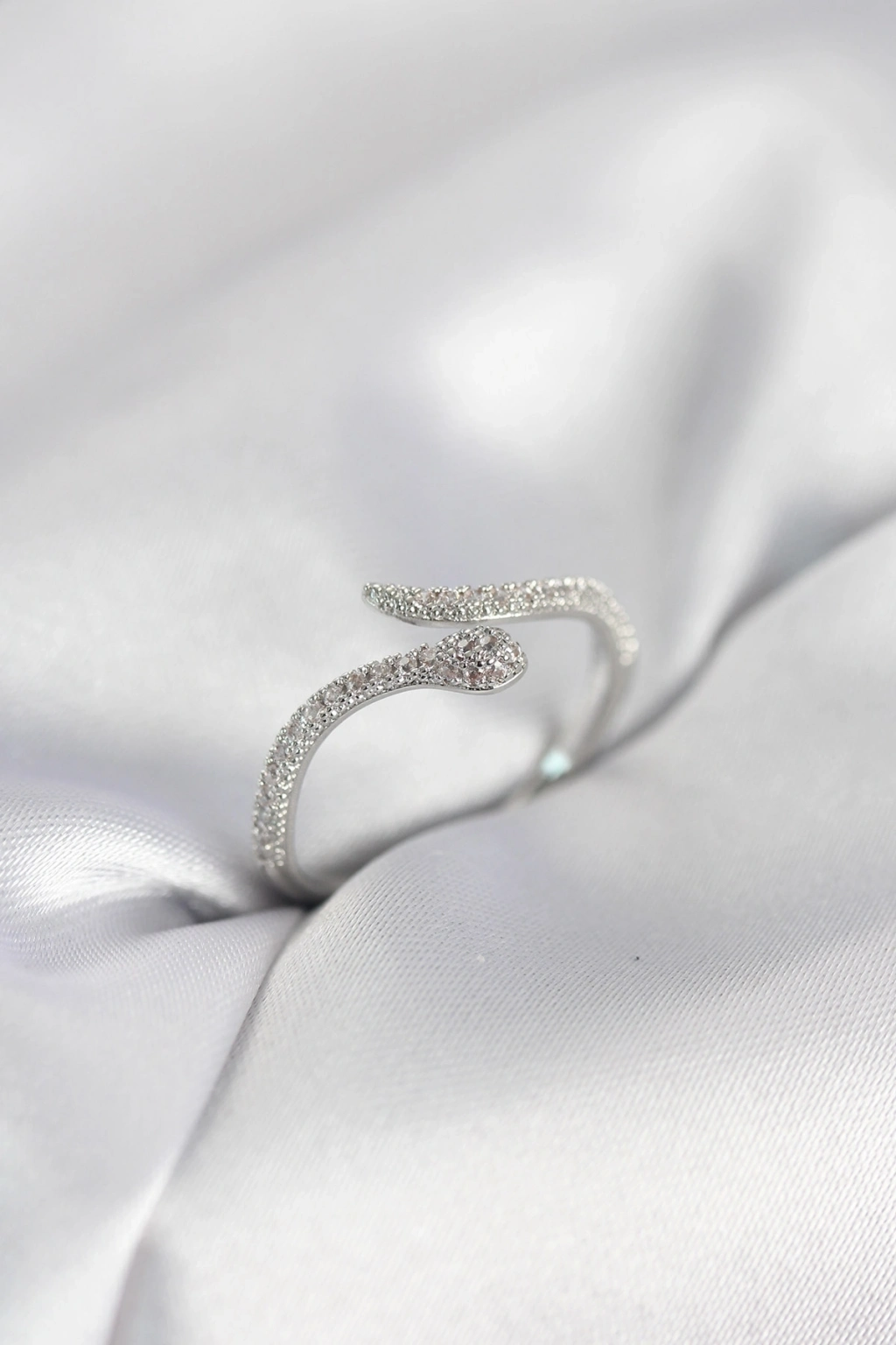 ® Gümüş Renk Yılan Model Zirkon Taşlı Kadın Yüzük