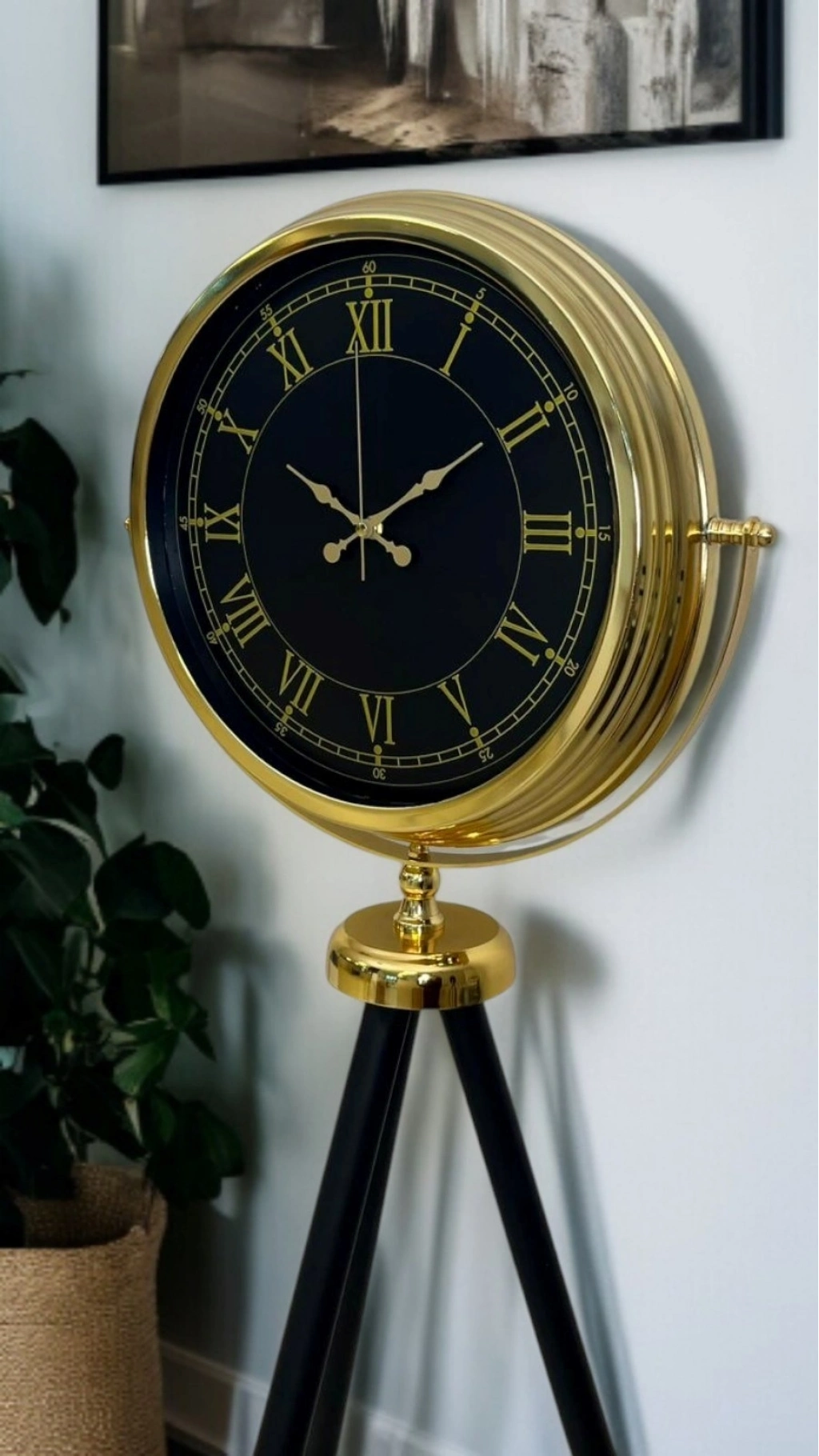 Mekânlara yalnızca zamanı değil, gücü, dengeyi ve asaleti de taşıyan bu Gold Tripod Ayaklı Saat, klasik Roma estetiğini modern tasarım anlayışıyla birleştirerek yaşam alanlarında güçlü bir odak noktası oluşturur. Siyah zeminli kadranı, gold detayları ve üç ayaklı dengeli formu sayesinde bulunduğu ortamda tek başına dekorasyon etkisi yaratır.