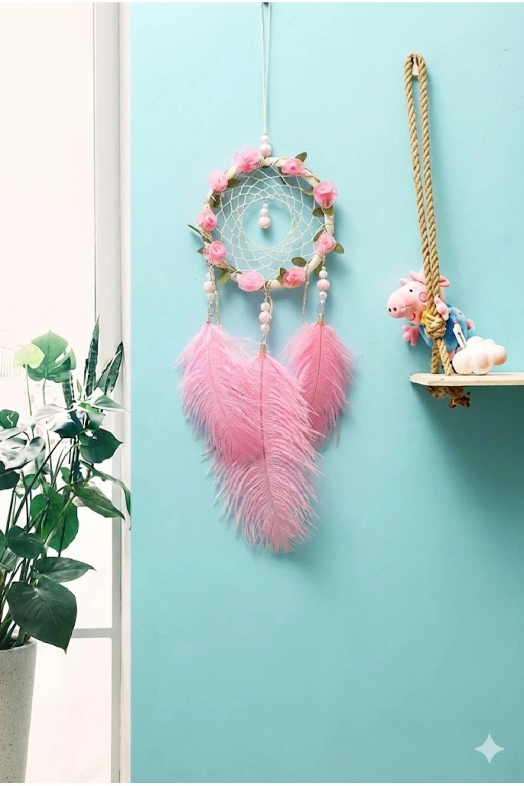 ® Işıklı Pembe Gül Detaylı El Yapımı Rüya Kapanı - Romantik Duvar Süsü & Hediyelik Düş Kapanı