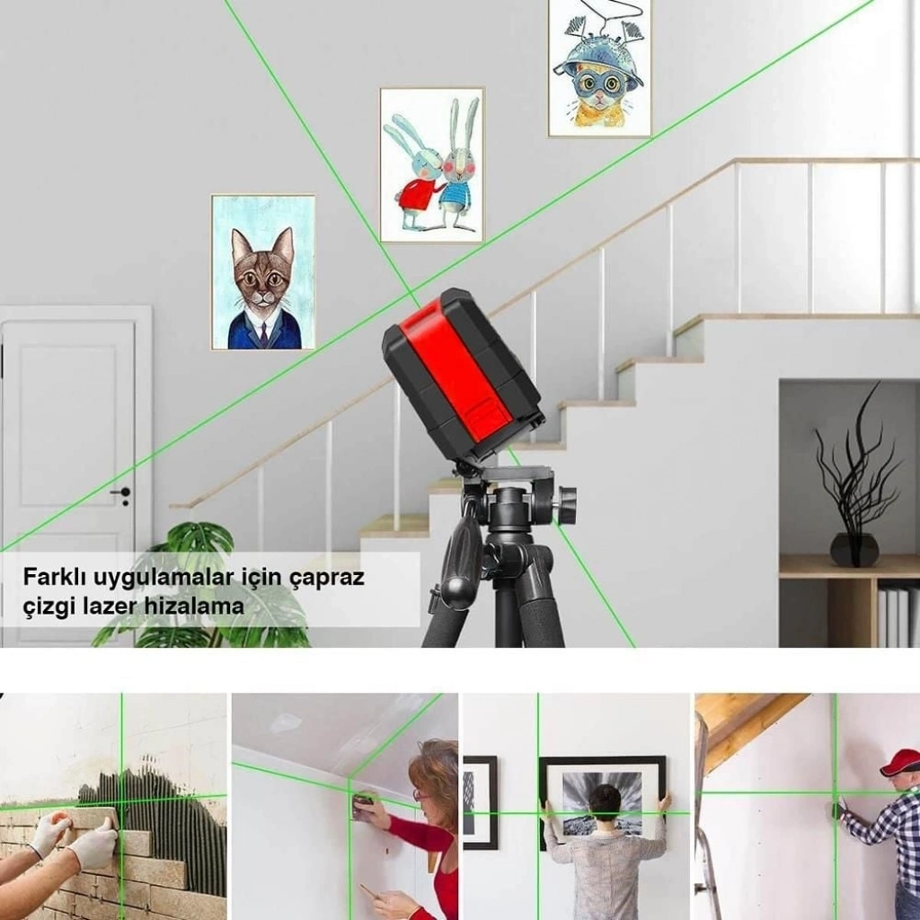 Bir adet yatay ve bir adet dikey çizgi lazer ile oluşan artı lazer hattı ile son derece kullanışlı yeşil lazer hizalama,