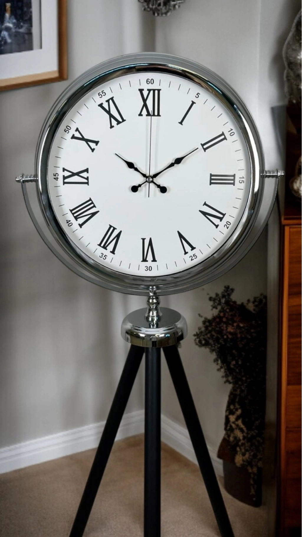 ?️ Krom Tripod Ayaklı Saat – 150 × 45 cm