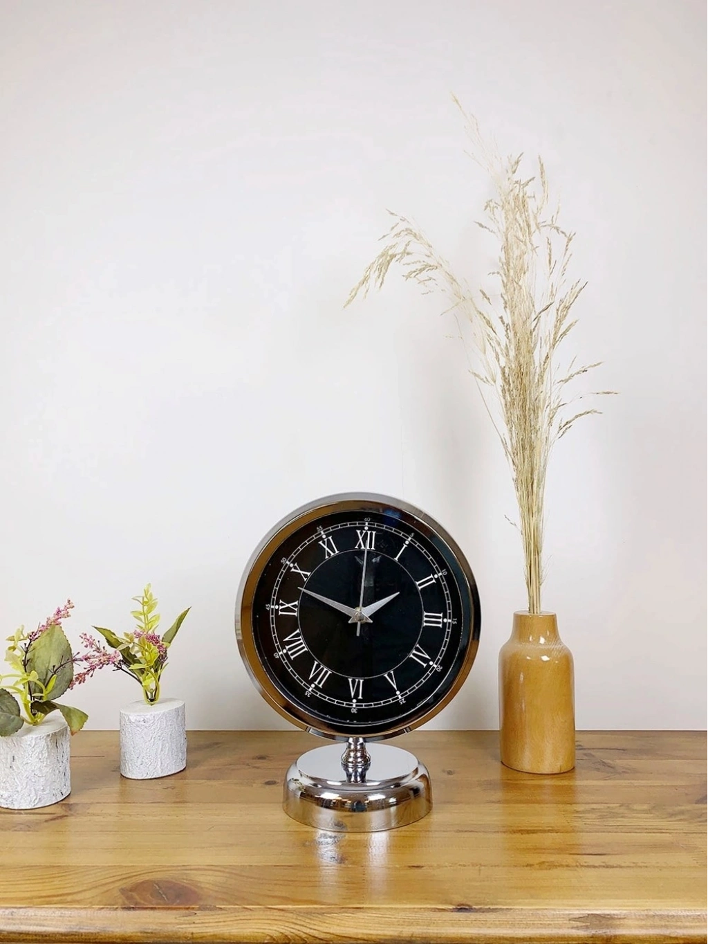 Krom Metal Siyah Retro Masa Saati 25×20 cm
